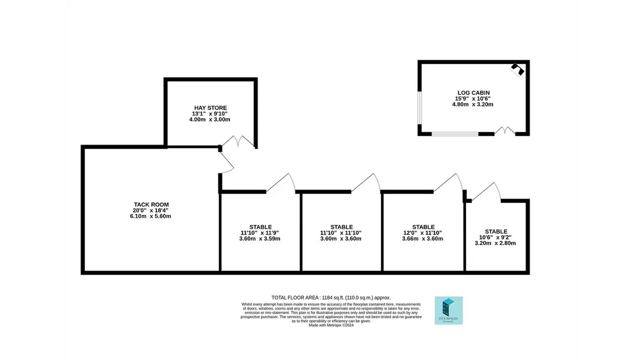 - Stable block with 3 loose boxes, pony box, tack room, hay shed.