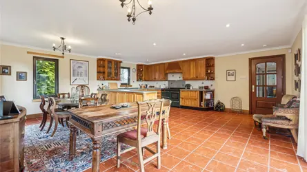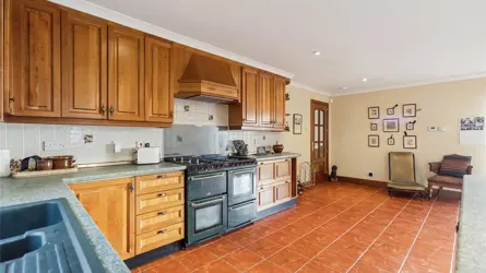 SITUATION Orchard House is a lovely family home set in a delightful edge of village setting in Strathkinness, a short distance to the west of St Andrews in Fife. Enjoying good views over the surrounding fields and countryside, the property is very well placed for accessing St Andrews, Cupar and Dundee. In terms of local amenities St Andrews is just a 5 minute drive from the house. It is renowned worldwide as the “Home of Golf,” offering a fine cosmopolitan mix of shops, restaurants, pubs and the like. The City of Dundee is approximately 20 minutes to the north and Edinburgh about an hour to the south.The glorious rolling Fife countryside and coastline which surrounds Strathkinness supports an array of wildlife, and for the outdoor enthusiast offers easy access to many recreational pursuits including walking, riding, cycling, and golf. There are several top courses in and around St Andrews including The Old Course which regularly hosts the British Open – the event returns to the town in 2027.Challenging shooting and fishing may be enjoyed locally and there are the wide open spaces of the Lomond Hills and several lovely nearby beaches including St Andrews, Tentsmuir, Kingbarns, Crail, and Elie. For day trips there are a number of National Trust for Scotland properties in the area including Falkland Palace, Hill of Tarvit and Kellie Castle. The quaint fishing villages of Fife’s East Neuk are a short drive to the south. State schooling is available locally with private schooling being provided at St Leonards in St Andrews and Dundee High School. There are railway stations in Leuchars, Cupar, Ladybank, and Markinch. Edinburgh airport is about one hour away.DESCRIPTION Orchard House was built around 23 years ago and offers a spacious family home built of rendered block under a tiled roof and extends to about 284 sqm over two levels. The property is entered through a vestibule into the main hallway which is the heart of the property giving access to all ground floor accommodation, which mainly has hardwood flooring and floor tiling throughout. The property is fully double glazed and benefits from underfloor heating. The sitting room has an ornate fireplace with living flame gas fire and a lovely south facing bay window with patio doors leading outside to an extensive wraparound terrace. The spacious kitchen/dining room has an integrated dishwasher, fridge, and a Belling 6 ring oven with hob and a large area to dine in. Patio doors lead to a further south facing terrace. The utility room has a pantry off and gives access to the rear garden. A timber staircase leads to the first floor where there is galleried landing with hardwood flooring, three double bedrooms and a shower room which complete the accommodation. ** Struan Cottage which fronts Main Street has common access and ownership is being offered for sale contemporaneously.ACCOMMODATION Ground Floor: Vestibule, hallway, sitting room, kitchen/dining room, bedroom 1 with en suite bathroom, study/bedroom 2, shower room, utility room.1st Floor: 3 bedrooms, shower room.GARDEN AND GROUNDSThe property is accessed by electric security gates leading to a monobloc driveway. This leads through open lawns to a generous parking area at the west of the house. Surrounding the house is an extensive garden extending to 0.9 acres, largely laid to lawn with mature trees. A paved terraced surrounds the property to the front, excellent for outside dining. OutbuildingsDouble garage with automatic electric doors, garden store and workshop. Stone built shed with potential for other uses. Struan CottageSituated at the gateway to Orchard House, Struan Cottage is also owned by the vendors and is available for purchase by separate negotiation. COUNCIL TAX The property has been assessed by Fife Council as Band G.FLOOD RISKFlood maps of the area can be viewed at https://map.sepa.org.uk/floodmaps/FloodRisk/SearchACCESS/THIRD PARTY RIGHTS OF ACCESS/ SERVITUDES ETCStruan Cottage (also owned by the vendors) has a right of access of the initial section of the access drive to access their rear courtyard and to maintain adjacent boundaries.DIRECTIONS From St. Andrews take the B939 in a westerly direction and turn right at the junction for Strathkinness. Orchard House (43a Main Street) is on the right hand side opposite Little Beehive Nursery. Parking is available to the rear of property.POST CODE KY16 9RZ WHAT3WORDSTo find this property location to within 3 metres, download and use What3Words and enter the following 3 words: ///grandest.codes.retractFIXTURES AND FITTINGSNo items are included unless specifically mentioned in these particulars. Items of furniture are available by separate negotiation. VIEWINGSStrictly by appointment with the Selling Agents.