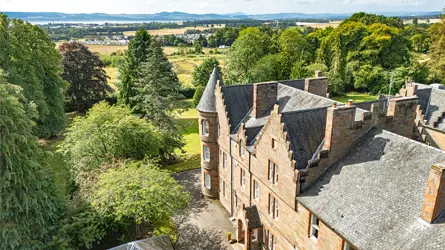 - Distant views over the River Tay and Fife hills.