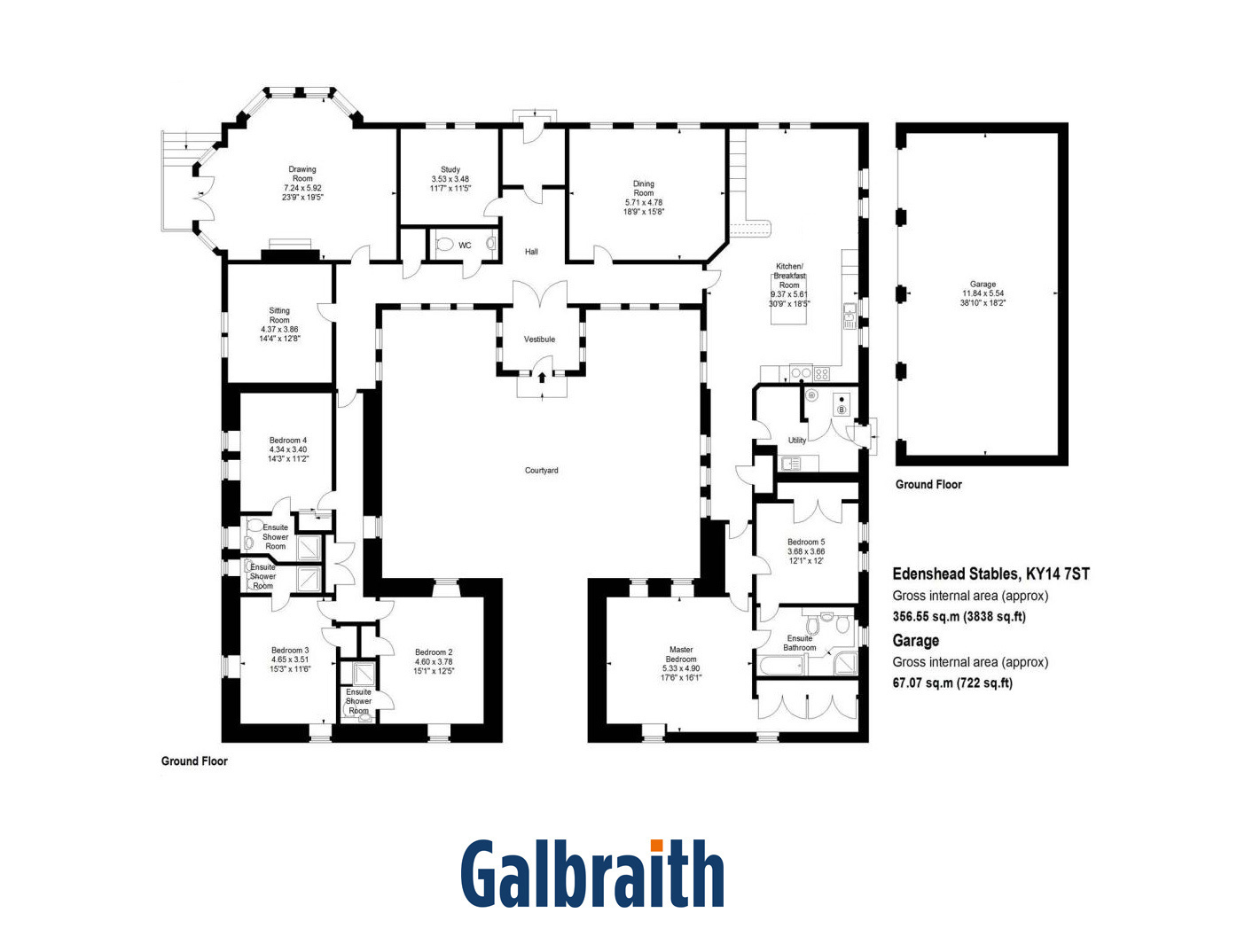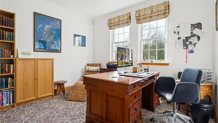 SITUATIONEdenshead Stables lies about 12 miles south-east of Perth, some 34 miles north of Edinburgh, in an area of open countryside overlooking West Lomond. The property benefits from excellent access onto the A91 which links St Andrews to Stirling, and provides access to the M90 with Perth to the north and Edinburgh to the south. To the east, St Andrews, one of Scotland’s most attractive towns, has a wide range of amenities and entertainment facilities. Nearby, the former market town of Cupar provides an excellent range of shops and services and hosts a bustling monthly Farmers Market, with local produce on display. There are number of smaller settlements such as Strathmiglo, Milnathort, Auchtermuchty and Falkland, which cater for day-to-day goods and services.The former market towns of Cupar and Perth have excellent communications with mainline railway stations and major roads lead to the major cities of Scotland, all lying within approximately one hour’s drive. From Edinburgh Airport there are regular shuttle flights to London and departures to various European countries. The area is home to an array of wildlife and, for the outdoor enthusiast, offers access to a wide range of recreational pursuits including walking, cycling, riding and golf with many highly rated courses within easy reach including Ladybank, Lundin Links, Elie and the many fine courses in and around St Andrews where the Old Course plays regular host to the British Open.State schooling is available locally and the area is well catered for in terms of private schooling with St Leonards in St Andrews, Dollar Academy and Strathallan all nearby.DESCRIPTIONEdenshead Stables was built around 2005 on the site of a ruined stables. Prior to the rebuild project only the archway and surrounding walls were in existence, and it was then rebuilt to create the exceptional courtyard property that exists today. Where possible the original walls were retained, but it was largely rebuilt on much of the footprint of the original structure, although some of the original stone was used on the new build sections.The current owners have done much to modernise the house and create a comfortable family home, with improvements including the upgrading of the kitchen and main en suite and carrying out significant landscaping work to maximise the views over the River Eden to the Lomond Hills in distance.The house benefits from hardwood doors and there is hardwood flooring in the drawing room and parts of the dining room. The kitchen/breakfast room has been partially remodelled, and benefits from Silestone worktops and quality floor tiles as well as an oil fired Aga and the good range of integral appliances include a NEFF microwave fan oven and warming drawer. The principal bedroom’s en suite bathroom benefits from electric under floor heating as well as duel fuel towel rail.The house is approached from the east by an archway, surmounted by a weather vane that leads into a central monobloc courtyard and to a protruding entrance porch. From the reception hall, a door leads off to a dining room, WC, drawing room and sitting room as well as the spacious kitchen/breakfast room. The drawing room has a flame effect LPG fire as well as south facing glazed double doors leading out to the garden. A broad corridor leads off to the primary bedroom accommodation, which comprises three spacious bedrooms with en suite shower rooms and excellent storage.Situated off the kitchen/breakfast room is a utility room as well as bedroom 5/dressing room and principal bedroom with en suite bathroom (which also connects through to bedroom 5/dressing room).ACCOMMODATIONEntrance vestibule, main hall, drawing room, sitting room, dining room, study, kitchen/breakfast, principal bedroom with en-suite bathroom connecting to bedroom 5/dressing room, three further bedrooms with en-suite shower rooms, WC.GARDEN AND GROUNDSEdenshead Stables is approached from Gateside by a shared gravel track, leading through the entrance to a generous parking area to the east side of the house. The house is set in beautiful gardens and grounds extending to about 2.7 acres largely laid to lawn as well as a meadow with mature trees and shrubs. To the west side of the house is a lovely garden terrace, which enjoys a lovely southerly aspect over the River Eden and open countryside to the West Lomond on the distance.Pathways lead through the mature woodland policies to a meadow bordering the River Eden.To the north side of the house is a substantial garage building with parking for four cars and a substantial monobloc parking area. Beyond are a greenhouse and two garden stores.COUNCIL TAX The property has been assessed by Fife Council as Band H. FLOOD RISKFlood maps of the area can be viewed at https://map.sepa.org.uk/floodmaps/FloodRisk/SearchACCESS/THIRD PARTY RIGHTS OF ACCESS/ SERVITUDES ETCEdenshead Stables has a right of access over the private track.DIRECTIONSFrom the A91 and Gateside take the turning onto the private tree lined drive to Edenshead, which is opposite the turning onto the A912 signposted for M90. Edenshead Stable is on the right after a short distance.POST CODEKY14 7STWHAT3WORDSTo find this property location to within 3 metres, download and use What3Words and enter the following 3 words:texts.striving.outhouseLOCAL AUTHORITYFife Council.FIXTURES AND FITTINGSNo items are included unless specifically mentioned in these particulars. The carpets, light fixtures and most of the curtains are included although the curtains in the sitting room and the dressing room/bedroom 5 are excluded. Some of the garden equipment is available for purchase by separate negotiation.TREE PRESERVATION ORDERSMany of the mature trees are subject to tree preservation orders.VIEWINGSStrictly by appointment with the Selling Agents.ANTI MONEY LAUNDERING (AML) REGULATIONSPlease note that under the 2017 AML regulations we are legally required to carry out money laundering checks against purchasers. Upon verbal