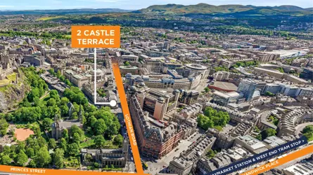 LOCATION2 Castle Terrace is located in the heart of Edinburgh’s commercial hub and benefits from excellent transport links and amenities with Edinburgh’s main retail and leisure thoroughfares in close proximity.TRANSPORT LINKSRailHaymarket 0.7 milesWaverley 0.8 milesTramPrinces Street Stop 0.4 milesWest End Stop 0.3 miBusBus stop adjacent to propertyDESCRIPTION2 Castle Terrace is arranged over 5 storeys, accessed via a prestigious entrance leading into a contemporary ground floor reception. Lift and stair access is provided to the offices and end of journey facilities.The second floor office suite is offered with the benefit of a high quality fit-out including 2 meeting rooms, collaboration space, a fully fitted kitchen with break out area, together with 4 demised WCs.SPECIFICATION:• High quality fit-out• EPC rating B• Raised access floors• LED lighting• Air conditioning• Secure entry system• Demised WC facilities• Modern kitchen facility with designated breakfast bar seating• Lift access• 2 car parking spaces. Additional parking can be secured at thenearby NCP Castle Terrace Car Park.• Changing rooms with showers, lockers, drying facilities and WC’s• Secure bike storageLEASE TERMSOur client is looking to dispose of their leasehold interest in the suite which runs to 25th May 2027. Extended terms may be negotiated, subject to covenant.