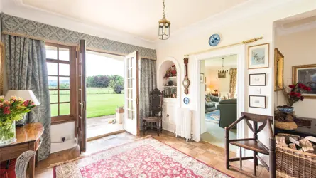 GENERALBeech Hill is situated about 3 miles south of Haddington and about 22 miles east of Edinburgh. The surrounding landscape, over which the house looks, is a beautiful combination of fertile farmland and mature woodland set against the backdrop of the heather clad Lammermuir Hills. East Lothian is known for its relatively dry, sunny climate.There are excellent local shops and pubs in the delightful village of Gifford, while Haddington, North Berwick and Dunbar provide a wider range of everyday shops, supermarkets and services. The A1 allows easy access by car to the north and south, there are regular commuter rail services to Edinburgh from Longniddry and Drem and regular direct trains to London from Dunbar. Edinburgh Airport is 31 miles away to the west.The area is well served by private schools including Belhaven Hill at Dunbar, The Compass in Haddington and Loretto at Mussleburgh. A number of Edinburgh’s private schools run daily buses to collect pupils from East Lothian.The county is renowned for its outdoor leisure amenities. Some of the finest golf courses in Scotland including Muirfield, Gullane, Archerfield and Dunbar are all close by.There are wonderful walks along the coastline and in the Lammermuirs which are also home to a number of famous grouse moors. In addition partridge and pheasant shooting can be rented on local estates and farms.DESCRIPTIONBeech Hill is a most attractive residential estate which has remained in the ownership of the sellers’ family for almost 100 years. A fire destroyed the original Georgian building in the 1940’s, and the existing house was designed by Lindsay Jamieson in 1952 and built the following year. It is of harled construction under a slate roof and enjoys the unusual benefits of a comfortable, 20th century home set in the mature surroundings of a former mansion. The stables, walled garden and summer house which belonged to the original house, still remain.The oak front door, which is situated on the north side of the building, leads to a spacious reception hall off which are the drawing room, dining room and study. Both the drawing room and the dining room are elegant reception rooms with bay windows providing lovely uninterrupted views over the grounds to the Lammermuirs beyond. The kitchen is located at the east end of the ground floor and includes fitted wooden cabinets rescued from the original house and a 4 oven Aga stove.All the bedrooms are found on the first floor and include the master bedroom with en suite bathroom, four double bedrooms and a single bedroom, and two further bathrooms. Particular features of the house are the hardwood floors on the ground floor and the extensive storage space on both floors. All the bedrooms have built in wardrobes and there is oil fired central heating.The original stable yard lies to the east of the house and is built of local stone under slate roofs. These useful and attractive buildings include the following:• Former stables (with hay loft above)• Double garage• Studio, above garage• Hen run• Workshop• Wood, feed and machinery stores• Apple store adjacent to Stables CottageStables Cottage forms part of this range and comprises a sitting room, kitchen, two bedrooms and a bathroom arranged over two floors. It has full double glazing and LPG fired central heating. It is currently let on a Short Assured Tenancy.The Lodge Cottage stands guard at the entrance of the driveway to Beech Hill and includes a sitting room, kitchen, two bedrooms and bathroom arranged on the ground floor. It has oil fired central heating and it is also let.The gardens and grounds surround and protect Beech Hill house and extend in total to about 14 acres. The garden is divided into three principal areas. To the north is a gravel sweep and lawns. To the south there are further extensive lawns and a terrace in front of the house. To the west the delightful walled garden, which has been carefully planted and restored by the sellers, is stocked with herbaceous plants, shrubs, specimen trees and fruit trees including fig, cherry, apple and plum. The summer house or tower in the northwest corner of the wall is particularly charming.The pond is situated in the field which lies to the south of the house. It is a haven for ducks, other wildlife and aquatic plants. The field is currently sown out in grass and together with the field lying to the north of the house, is ideal for grazing horses and other livestock. Both enclosures require stock proof fencing, and are currently registered as forming part of an agricultural holding. Further details are available from the selling agents.The woodland comprises mature and young trees and includes the millennium plantation lying to the north of the house, an apple orchard, and regenerating birch woodlands. There is a former tennis court near the orchard.DIRECTIONS (See location plan)From Haddington take the B6360 towards Gifford. After passing the driveway to Lennoxlove House (on the right hand side) the road turns sharp left and then sharp right. After the sharp right turn take the second minor public road to the left sign posted Beech Hill. The Lodge Cottage at the end of the Beech Hill drive can be seen straight ahead after about half a mile.VIEWINGStrictly by appointment with the selling agents.COUNCIL TAXBeech Hill House – Band HStable Cottage – Band DLodge Cottage – Band DSERVICES (all properties)Mains electricity, mains water, private drainage (septic tanks).PLANNINGThe Gate Lodge and gate piers are Category B listed.ENERGY PERFORMANCEThe energy performance ratings are as follows:Beech Hill House - Band GStables Cottage - Band ELodge Cottage - Band G