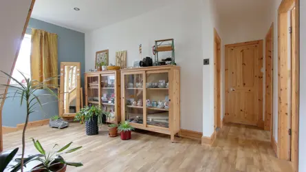 - Energy efficient with biomass boiler, solar panels, thermal store and inverter