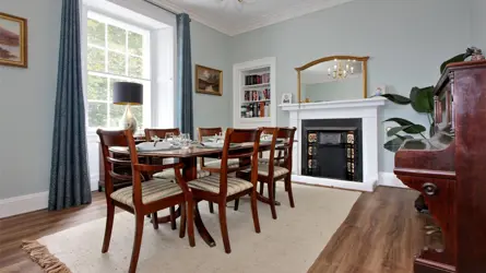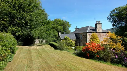 The Glebe House is an impressive B Listed, former Manse sitting in a stunning, elevated position overlooking Strathspey. Built from stone with sandstone details under a pitched slate roof in 1843, it has been renovated by the current owners and has been sensitively modernised and well-maintained. There are a number of fine period features that one would hope to find in a house of such age and character including cornicing, high ceilings and fireplaces. The double aspect sitting room with woodburner, and dining kitchen with its high quality modern yet sympathetic to the age and character of the house, are particularly appealing rooms. The house is heated with gas central heating, has secondary double glazing, mains water and private foul drainage. GARDEN AND GROUNDSOutside, the grounds are no less impressive than the house, the mature garden which extends to just under an acre includes a patio, areas of lawn, well stocked beds and borders and an array of mature trees. A secluded courtyard, accessed from the kitchen makes a wonderful private seating area. There is also a stone and slate built steading which currently provides useful storage space but has the potential to be converted into further accommodation (subject to containing all necessary consents). Ample parking is available on the gravelled driveway in addition to the garage.