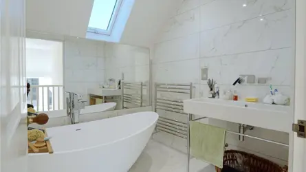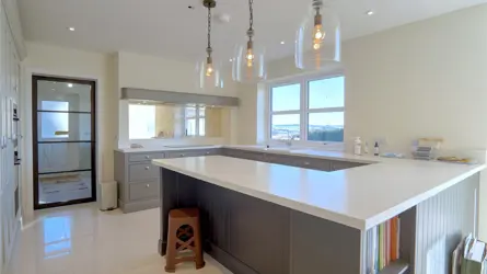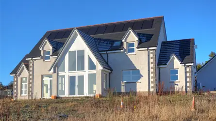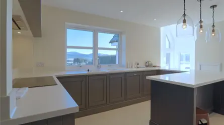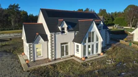 Highwood Taigh is a wonderful, architect designed, family home constructed, by well-regarded Coastal Builders, from rendered block with a pitched tile roof. It has been completed to a very high standard and provides spacious accommodation over two storeys. The ground floor is semi-open plan, the sun room and dining room both have floor to ceiling windows that flood the rooms with natural light and make the most of the far reaching south easterly views. There are also three sets of French doors leading out to the garden. The kitchen has high quality fixtures and fittings, as do the bathrooms, and a number of integrated appliances. All of the rooms are very well proportioned, with the master bedroom being particularly generously sized. The house is double glazed, has solar PV panels and an air source heat pump with under floor heating on the ground floor and radiators on the first floor.ACCOMMODATIONGround Floor:Hallway. Sitting room. Sun room. Dining room. Kitchen. Study/4th bedroom. Utility room. Shower room.First Floor:Landing. 3 bedrooms (2 with en suite shower rooms). Bathroom.OUTSTANDING WORKSThere are some outstanding snagging works inside the property including a toilet flusher to be installed in the main bathroom, a sink to be fitted in an en suite shower room, some incomplete tiling and three holes in the kitchen ceiling. These works will be completed prior to the completion of any sale. The garden will not be landscaped.GARDENOutside, there is a good-sized garden which has not been landscaped, surrounds the property and is bordered by a block wall. There is ample space for parking on the driveway to the front of the house in addition to the detached double garage.