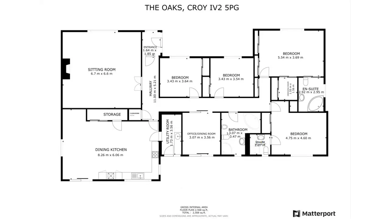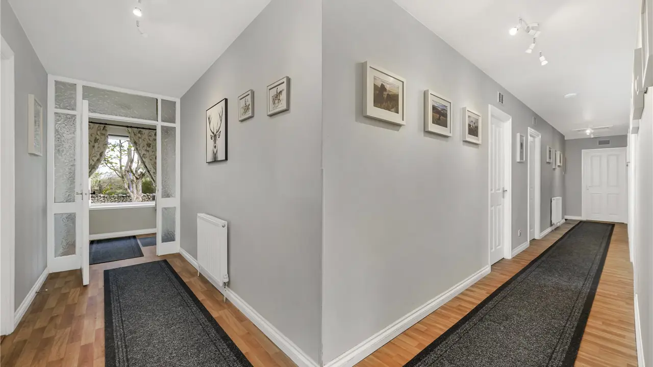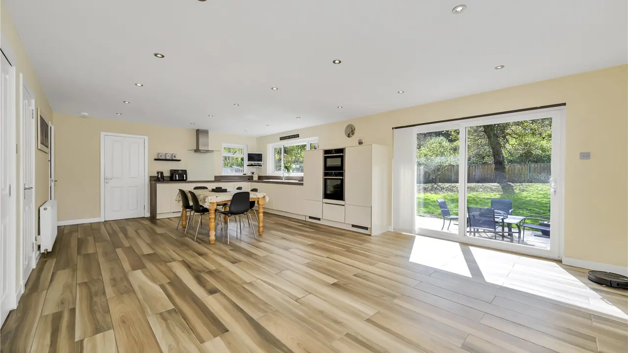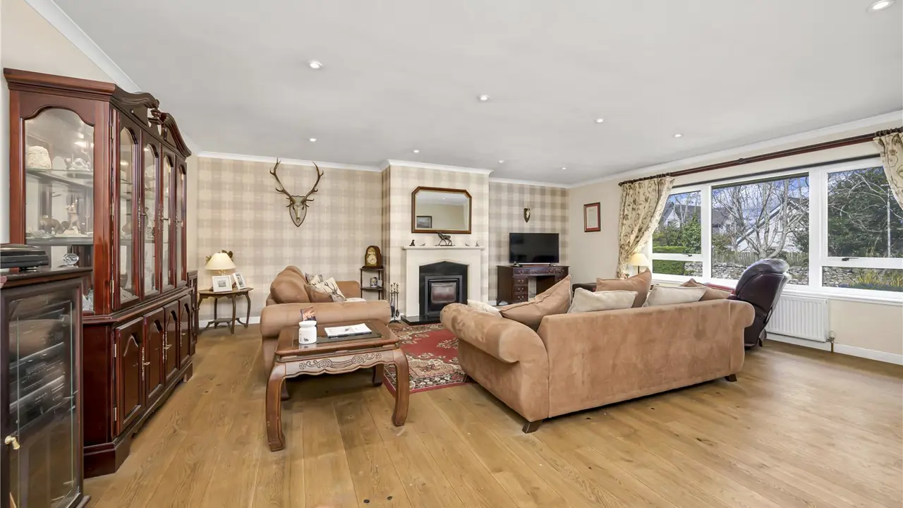 The village of Croy has a primary school, a popular café, a vegan bakery and a community hall. The nearby ‘sustainable’ town of Tornagrain provides further basic day to day amenities including a convenience store, pharmacy and coffee shop. There is a train station about 2.5 miles away and Croy has good public transport connections with regular buses to Inverness and Nairn. Secondary schooling is available in Nairn and Culloden, while Gordonstoun Independent School is about 30 miles away. Inverness is within easy reach and has all the facilities of a modern city including its airport, which is just 3 miles from the house, with regular flights to the south and Europe.The countryside around Croy is lush and beautiful with riverside walks and wooded paths set against a backdrop of rugged moorland and hills, while just a short drive away is the coast with its wide-open beaches. The area offers an excellent range of leisure and sporting pursuits with fishing, shooting, cycling and sailing available nearby, championship links golf courses at Castle Stuart and Nairn, and both the Cairngorm and The Lecht Ski Centres approximately an hour’s drive away.The Oaks is a detached bungalow with spacious and flexible accommodation spread over the one floor allowing for lateral living. In a lovely village location, the property has well-proportioned accommodation including a generously sized sitting room with a wood burning stove. The kitchen has integral NEFF appliances and provides plenty of room for informal dining with the dining room, current utilised as a home office, and the dining kitchen both having sliding glazed doors leading to the rear garden and allowing an influx of natural light. All four bedrooms boast fitted wardrobes, one has an e-suite shower room, and the principal bedroom has a dressing room and an en-suite bathroom.