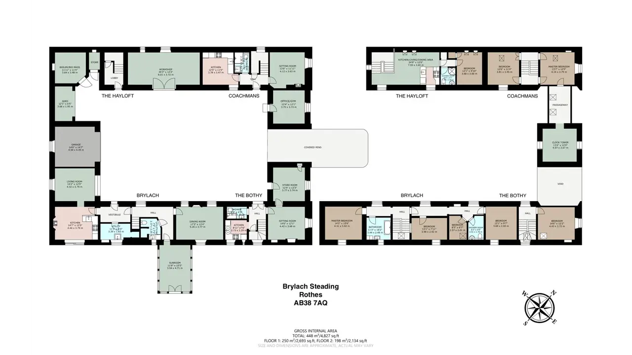 The Steading at Brylach is a very impressive conversion of a traditional stone built steading into four separate individual properties. Sitting in an elevated position, the property enjoys lovely views over the Glen of Rothes towards the Brown Muir.Dating from 1873 and forming what is effectively a closed courtyard, the property was originally built for use as the carriage houses and stables for the nearby Glen of Rothes House. The building is category B listed and in relatively recent years, it has been converted into four separate dwellings with the principle house (Brylach) occupied by the present owners together with 3 additional cottages; The Hayloft, The Coachman’s and The Bothy.The properties are centred around an attractive communal courtyard with the Hayloft, The Bothy and The Coachman’s having operated very successfully as a holiday lets business over the past three years. The properties are each in very good condition, having been recently redecorated and upgraded and lend themselves brilliantly for use either as short term holiday or longer term residential lets, allowing a profitable business to be continued, as is the case at present, and which exploits all of the wonderful facilities the region has to offer.The dwellings each benefit from mains electricity, private water supplies and private foul drainage. Heating for all is provided by a communal 80kW wood pellet biomass boiler where to date each property has been individually metered and billed accordingly.Brylach HouseSun Room. Hall. Sitting/Dining Room. WC/Cloaks. Pantry. Kitchen. Lounge (off kitchen). Bathroom. Shower Room. 3 Bedrooms. Study/4th Bedroom.The HayloftHall. Open Plan Kitchen/Living/Dining Room. Shower Room. Bedroom.The Coachman’sHall. Sitting Room. Dining Kitchen. Shower Room. 2 Bedrooms.The BothyHall. Sitting Room. Kitchen. Shower Room. 1 Bedroom.In addition, there are several other rooms including the clock tower and loft space that offer themselves for development into additional accommodation either on their own or incorporated into either The Coachman’s or The Bothy (subject to planning).GARDEN AND GROUNDSSurrounding the steading are about two acres of amenity woodland. The main house has its own private garden which includes a patio and lawned area.