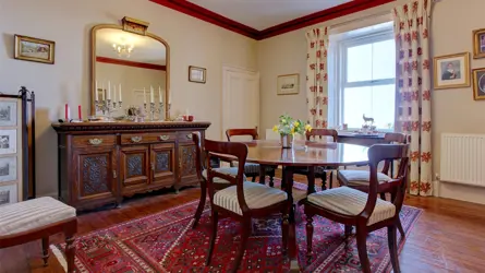 Easter Golford House is an elegant detached traditional house (previously called Scuan) located in a stunning rural setting near Brodie. Sitting in an elevated position on the eastern end of a small row of other similarly attractive houses, the house enjoys a wonderful outlook across open countryside, the Moray Firth and on a clear day, the hills of Sutherland beyond. Likely to date from the late 1800s and constructed of stone under a slate roof, extensive accommodation is provided over two storeys, including on the ground floor a vestibule, hallway, a magnificent drawing room, dining room, morning room / snug, study, cloak room, inner hall / study area, shower room, cloak room and boot room. On the first floor, a landing leads to two separate shower rooms, an attic room / 5th bedroom and four principal bedrooms.The house is very tastefully decorated and has a lovely bright and airy atmosphere. It has many of the features one would hope to find in a property of this age and quality including tall, corniced ceilings, fireplaces (with two wood stoves) and an attractive staircase with a carved handrail and ornate cast iron balusters. The flexible room layout allows the house to be used in a variety of ways with the dining room or potentially the rear study offering themselves as additional ground floor bedrooms if required. The triple aspect drawing room, morning room, dining room and kitchen are particularly appealing rooms. The house is heated using oil central heating and is mainly double glazed.GARDENOutside, there is a generously sized garden enclosed by a mature hedge and stone wall. The garden includes a gravelled driveway and turning circle, areas of lawn, well stocked beds and borders and several mature specimen trees. There is large double garage providing excellent storage space.SITUATIONEaster Golford House is located in a highly desirable rural setting a short distance from the popular Highland village of Auldearn and close to Nairn on the Moray coast. The Moray coast is famous for its mild dry climate and beautiful coastline and the countryside offers a range of leisure and sporting pursuits. Auldearn has a highly regarded primary school, a popular pub and restaurant, and luxury country house hotel (Boath House). Nearby, Nairn, which can be reached via the off-road cycle track, is a thriving town with a good range of shops and amenities, including a railway station, and excellent leisure facilities with two championship golf courses, a marina, swimming pool, gyms, and tennis courts. Private schooling is available at the world renowned Gordonstoun, about 18 miles away. Inverness is within easy reach and has all the facilities of a modern city including its airport with several flights per day to London, as well as regular flights to Europe.