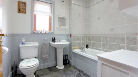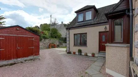 Woodside Croft is constructed of rendered block with a pitched tile roof and provides well-proportioned accommodation over two storeys. The kitchen/dining/sitting room is a particularly generously sized and appealing room with a multi fuel stove and sliding glazed doors leading out to the garden. The separate sitting room is wonderfully light and also has French doors to the front garden. A utility room and bathroom complete the ground floor accommodation. On the first floor there are three bedrooms, all with built in wardrobes, and a shower room. The house is double glazed, has mains services and gas central heating.GARDENOutside, there is a delightful, enclosed garden to the rear of the house with a lawn and patio seating area. Ample parking space is provided on the gravelled driveway and a timber garage provides useful storage space.