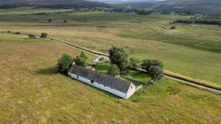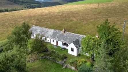 The Old Kennels is a delightful traditional cottage, that has been extended over the years located in a secluded, elevated position near the village of Tomintoul. Originally the Kennels of the Duke of Richmond but owned by the same family since the 1960’s, it is built of rendered stone under a pitched slate roof and provides generous accommodation over a single storey. The Old Kennels is surrounded by open countryside and benefits from views to the south. The front door opens into the hallway where, to the right is a delightful sitting room which has an open fire and picture windows that take in the wonderful views across open countryside to the Cairngorms. A door from the sitting room leads to two bedrooms. The kitchen can be found to the left of the main hallway and has base and wall units and space for a table. The family bathroom and two further bedrooms complete the accommodation on the ground floor, with access to the floored attic, with a window and currently used as a playroom, from the back hall. Overall, the cottage appears to be in good condition and has a welcoming atmosphere. The Old Kennels has oil heating, double glazing, private water and drainage.GARDENOutside, the grounds surround the property and are mainly laid to lawn, with beds and borders containing a variety of shrubs and fruit bushes. The old vegetable garden is now a wonderful lawned area containing the bee hives which is bordered by a stone wall. Attached to the cottage, there is a shed with access to the WC and a large store with the original floor and hay racks Parking is provided on the driveway to the front of the house.