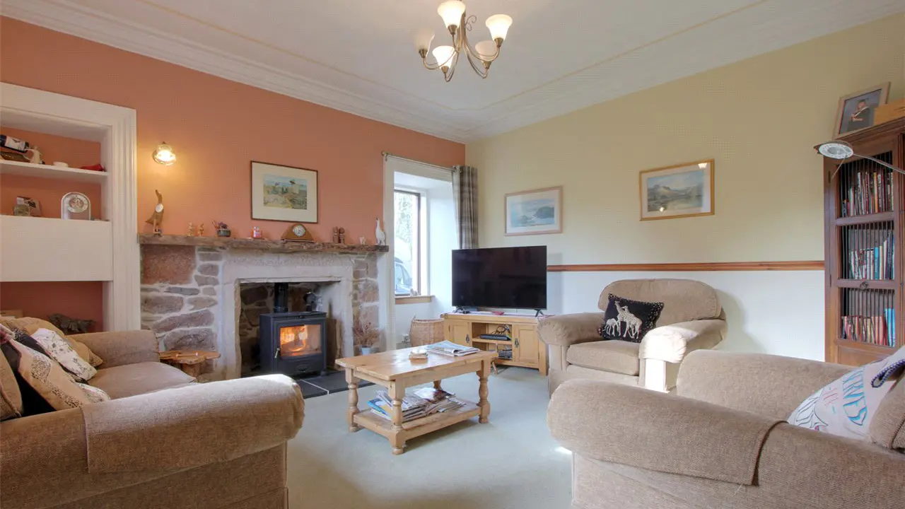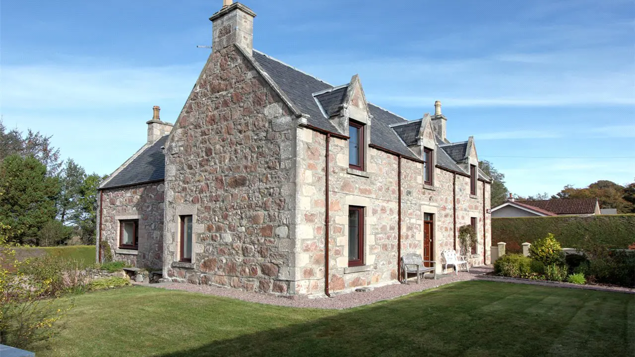 Newmill Farmhouse is a beautifully presented family home that is constructed of stone under a pitched slate roof and provides spacious accommodation over two storeys with a number of fine features including high ceilings, dado rails and cornicing. The entrance hallway gives access to an impressive, double aspect sitting room which has a wood burning stove set in an exposed stone surround. Opposite the sitting room is a further reception room which could also be used as 5th bedroom, adjacent to this is a family bathroom. Further down the hallway is the dining kitchen which has a sitting area, high quality, modern kitchen fittings and an oil fired Rayburn. The utility room is accessed via the kitchen and has space for white goods and a door to the garden. On the first floor there are four good sized bedrooms and a further bathroom. GARDEN Outside, the house sits within a very well-maintained garden which is primarily laid to lawn and is bordered by a mature hedge. A timber summer house provides a wonderful place to sit whilst two timber sheds provide excellent storage space. There is ample space for parking a number of vehicles on the gravelled driveway to the sides and rear of the house.SITUATION Newmill Farmhouse is an impressive former farmhouse located in a small hamlet just outside Auldearn, a highly desirable village close to Nairn on the Moray coast. The Moray coast is famous for its mild dry climate and beautiful coastline and the countryside offers a range of leisure and sporting pursuits. Auldearn has a highly regarded primary school, a popular pub and restaurant, and luxury country house hotel (Boath House). Nearby, Nairn, which can be reached via the off-road cycle track, is a thriving centre with a good range of shops and amenities, including a railway station, and excellent leisure facilities with two championship golf courses, a marina, swimming pool and tennis courts. Inverness is within easy reach and has all the facilities of a modern city including its airport with several flights per day to London, as well as regular flights to Europe.