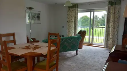 A stunning fully furnished open plan first floor furnished two bedroom apartment with open views over the golf course. Accommodation comprises: Open plan kitchen/living room. Master bedroom with en suite and walk in wardrobe, 2nd bedroom and family bathroom. Balcony. STRICTLY NO PETS. Available February.