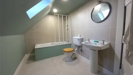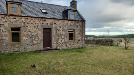 2 bedroom unfurnished detached house with Oil CH. Ground floor acc: hall, WC, utility room, kitchen, living room with woodburner. Upper floor leads to 2 bedrooms & bathroom with shower over bath. Parking & garden with open views to front & side. LARN1810017.