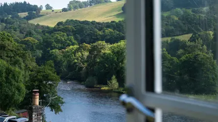 - Beautiful setting above River Tweed.