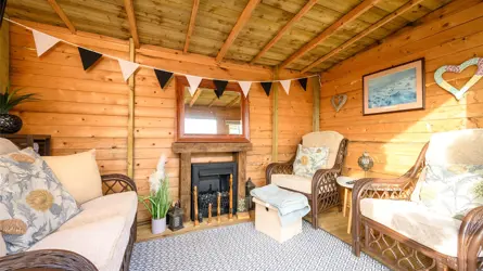 - Landscaped garden, summer house.