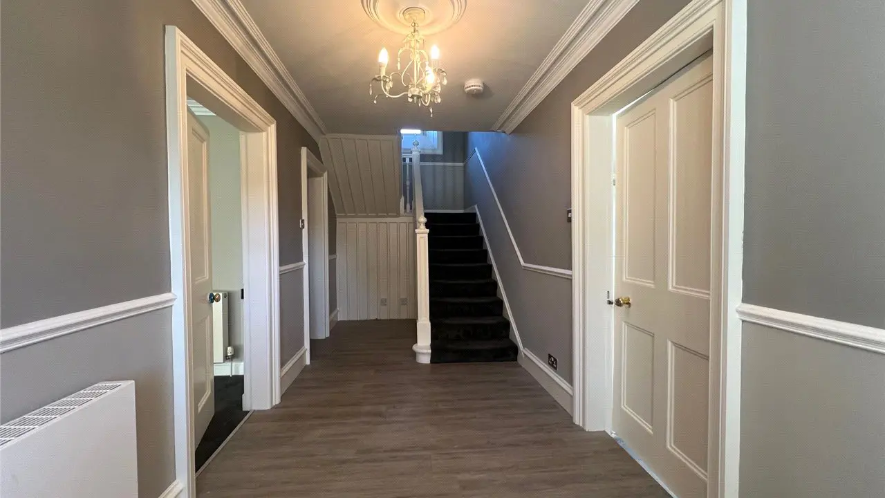 Nestled in a peaceful rural setting, Broomhill Farmhouse is an impressive six bedroom detached family home set within approx. 5 acres of grazing land, offering fantastic equestrian facilities. The property provides spacious and flexible family accommodation and comprises: entrance hallway, three reception rooms, dining kitchen with built-in appliances and French doors to patio seating area. The property boasts six bedrooms with one en-suite bathroom, two family bathrooms, WC, boot room & boiler room. Externally, the property enjoys extensive private garden grounds and benefits from a detached timber outbuilding, ideal for storage & potential for work at home space. Grazing land, two loose boxes, field shelter and tack room.*Opportunity to let the house only*