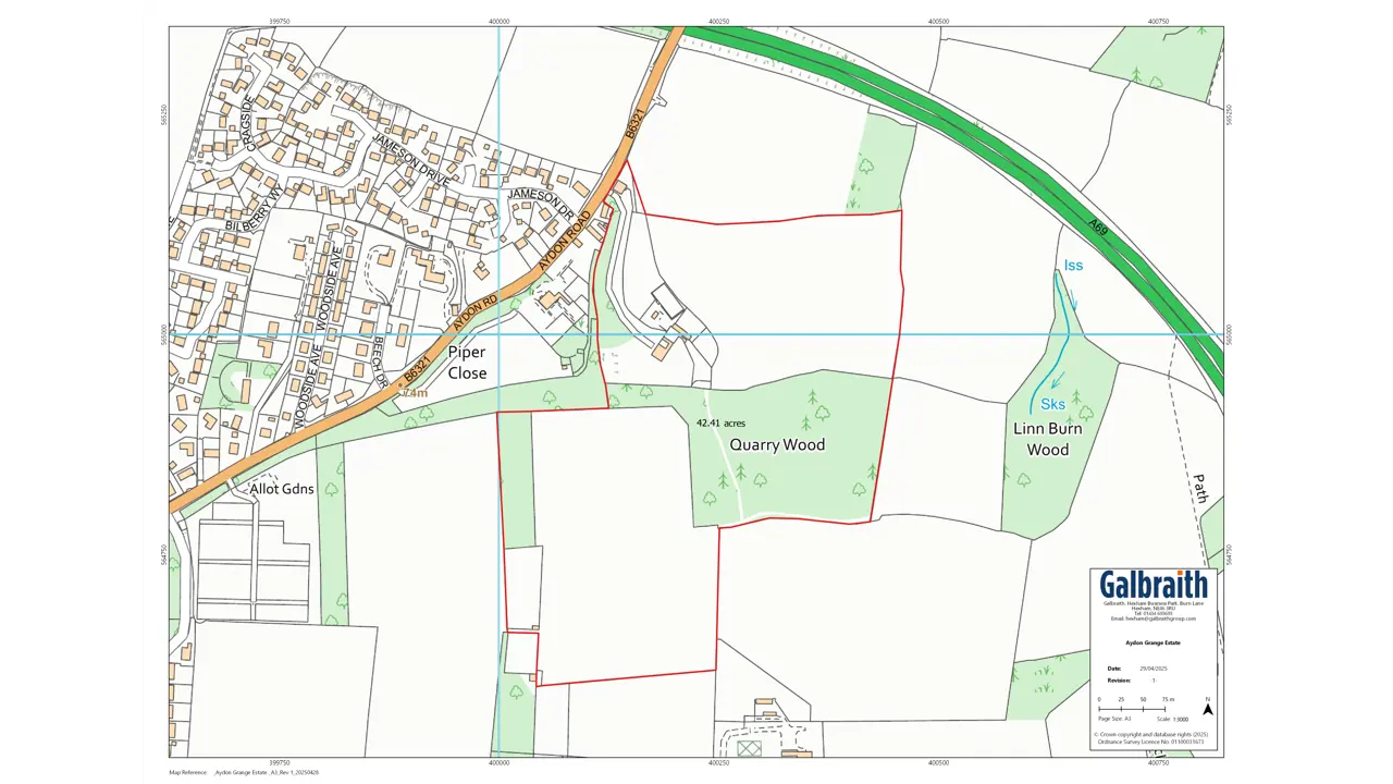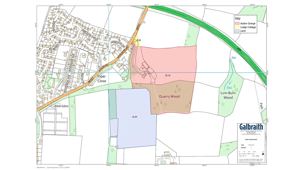 Brief HistoryAydon Grange was built in the 1890s and is believed to have originally been the dower house to the Aydon Estate. It was sold in 1948 to the sellers family and the sellers have added the Quarry Wood and the land to the South which they bought from the Howden Dene Estate in 1994.Lot 1 - Principal House, Garden and GroundsAydon Grange is one of the best houses in Corbridge. It is a handsome and substantial period house that provides about 5,000 square feet of comfortable and well-proportioned living accommodation. It is a family home with plenty of period character, positioned in an enviable setting and approached via an impressive private drive which passes through mature trees and lawns culminating in a gravel sweep at the front of the house. Aydon Grange is only a hop and a skip from the middle Corbridge.The house is surrounded by an extensive and pretty garden with a main lawn, some carefully created borders, a mixture of mature specimen trees and an orchard, there are two very special copper beach trees. The south facing sun terrace is an extremely pleasing feature of the garden. On the east side of the house there are a number of other garden “rooms”, high beech hedges provide structure and shelter in the fruit garden and orchard. This is high quality space for entertaining and unwinding. There are a good number of useful outbuildings and stores, some of which form an appealing courtyard. Beyond the garden is a lovely block of mature woodland of hardwood trees (9.34 acres (3.77Ha)), underplanted by spring flowering bulbs. There are about 12.34 acres (4.98Ha) of permanent pasture arranged mostly to the north and east of the house in two fenced parcels which could be subdivided further if necessary.There is an impressive staircase hall at the core of the house, off which are three reception rooms. These provide flexible and comfortable living accommodation. The drawing room is the largest and most formal of these with a high ceiling, an attractive open fire and bay window with a door giving access to the south facing terrace and garden. The snug is an intimate room with a wood burning stove, hatch to the kitchen and the other bay window. The snug has been used as a dining room in the past but now this is in the grander room, closer to the front door. The view to the south over Aydon Grange parkland from these windows is wonderful. The kitchen has wooden units as well as integrated appliances and an electric Aga. Adjoining the kitchen there is a utility room for further appliances, a butler’s pantry and a laundry. These rooms link and lead to the courtyard and are three sizeable rooms with scope for a variety of uses. Upstairs there are six double bedrooms, including a large principal bedroom suite. The principal bedroom and two further bedrooms have en suite bathrooms, while there is also a house bathroom.The house has a pretty courtyard and there is an extensive range of useful outbuildings which serve well for parking, secure storage and stables. These outbuildings may provide opportunities e.g. a studio or annex. The tennis court is in a sheltered position.Lot 2 - Lodge CottageAydon Grange Lodge is an attractive detached single-story house with three bedrooms, one bathroom, a living room and a modern kitchen. It has an independent garden and there are two car parking spaces. About 0.28 acres (0.11 Ha).Lot 3 - Land Of good amenity value to the main house, about 16.96 acres (6.86Ha) of permanent pasture, planted with specimen parkland trees and a strip of about 0.9ac (0.36Ha) which has been planted as a shelter belt on the western fringe. More recently a paddock has been planted to continue the shelter belt and there is an attractive stone building which also presents with a variety of possible uses (subject to planning). There is water supply, and the fences are in good condition. This parcel of land has the benefit of a right of way through the old Howden Dene Farm and out on to the Newcastle Road (B6530).LocationAydon Grange is close to Corbridge but is a country house with its own identity. It is blessed with a high degree of privacy and is in a peaceful position. The convenience of the location of Aydon Grange and the extensive grounds are extremely compelling attributes.Corbridge is a popular village or character and historic importance. It sits comfortably alongside the picturesque River Tyne. The property will appeal due to the proximity to central Corbridge which will be within walking distance for some. Corbridge has a wide range of everyday amenities on offer including a health centre, primary and middle schools, popular independent shops, pubs and restaurants, a garage and railway station. A wider range of amenities can be found in Hexham with its choice of shops and supermarkets, leisure facilities and schools. The area is well connected by road, with the A69 providing routes towards the A1 and Newcastle Upon Tyne. For trains, Corbridge station is just south of the village, providing services to Newcastle and Carlisle. The surrounding Northumberland countryside is ideal for walking, riding and cycling, with the magnificent North Pennines and Northumberland National Park within easy reach, while golf is available nearby at the renowned Matfen and Hexham Golf Clubs.LottingThe Sellers are open to an alternative lotting proposal. Any sale will have to include provisions for necessary rights between the lots.OverageLot 3 of Aydon Grange is being offered for sale subject to development value covenants (overage) relating to increases in value arising in connection with the grant of planning permission for change of use. The specific details will be dealt with under the legal documentation. The House and garden will not be subject to the overage clause.Sporting and Mineral RightsThese are included in the sale as far as they are owned.DirectionsDrive out of Corbridge on the Aydon Road (B6321). The drive to Aydon Grange is the last on the right before you cross th