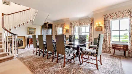 The Property Bog House is constructed with mellow sandstone and is a most idyllic place to live in privacy and seclusion yet within extremely easy striking distance of the major financial and communication centres of the Northeast. This exceptional property embodies timeless elegance and modern comfort, blending traditional charm with present day luxury. Much of the living accommodation is arranged on the ground floor. There is an extensive tarmac parking area. This property might be well suited to a wheelchair user. The decor is to a London quality finish and this is a property with strong environmental credentials.A grand reception hall subtly separates the main living areas away from the bedroom accommodation. The drawing room located in the oldest part of the house, has far reaching views with elegant tall windows overlooking the garden and the countryside beyond. There are a set of double doors that lead into the garden room. A vaulted ceiling with exposed beams and a solid fuel stove set with an ornate fireplace combine to make this a very comfortable room. The garden room is at the western end of the house. It has a stunning outlook, making it a truly wonderful space in which to enjoy the evening sun.The luxurious and sociable kitchen room is opposite the drawing room. Natural light floods through the south facing full height windows and double-glazed doors open into the sheltered south facing courtyard; a sheltered sun trap throughout the year. The kitchen has an electric Aga with a central island around it, and an excellent range of floor and wall units along with integrated appliances. At the other end of the kitchen is an open fire and ample space for both dining and comfortable sitting, enabling this room to be the real heart of the home. Double doors from the reception hall open into an elegant light filled dining room lit by an expanse of sash windows that overlook the garden. The dining room is further enhanced by a handsome feature fireplace. A sweeping staircase leads from the dining room to the main bedroom suite with en-suite bathroom.The bedroom wing of Bog House is located off the main hallway. There are four further bedrooms, each with en-suite bathroom facilities and one with a dressing room. A spacious study offers the versatility for use as an additional bedroom if required. The large laundry or utility completes the accommodation, offering a range of floor units with built in sink, fridge/freezer and a wine fridge. There is access to the plant room, housing the controls and hot water cylinders for the ground-source heat pumps, which provide underfloor heating within the main rooms of the house and heating via radiators to the bedrooms. The laundry room has a door into the rear porch.OutsideA traditional timber but electrically operated gate links into the sweeping gravel driveway, which opens to a gravelled courtyard bordered by beautifully manicured lawns planted with an array of trees including cherry trees and shrubs. The garden wraps around the property, has fabulous far reaching views and combines a mix of flower beds, a kitchen garden with raised beds and stone flagged terrace. There is a sheltered south facing courtyard off the kitchen. There is a large detached triple garage with two electric roller shutter doors and includes two separate storage rooms. The paddock lies to the north of the house and benefits from a separate access onto the drive in the north east corner.LocationBog House is close to Matfen but these are country houses with their own identity. The setting is blessed with a high degree of privacy and is a notably peaceful position. The convenience of the location of Bog House and the cottages and the extensive grounds are extremely compelling attributes.Matfen is a charming village of character and historic importance and is one of the most desirable Northumbrian villages. Matfen offers a selection of local amenities, including a village shop and tearoom, a village hall, a parish church and the renowned and recently renovated five-star Matfen Hall Hotel with its golf courses, spa, swimming pool and award-winning restaurant.Corbridge (7.5 miles) also offers a variety of everyday amenities including a health centre, primary and middle schools, popular independent shops, pubs and restaurants, a garage and railway station. A wider range of amenities can be found in Hexham with its choice of shops and supermarkets, leisure facilities and schools. The surrounding countryside of the Tyne Valley has beautiful scenery and appealing, historic villages, all of which are easily accessible via a good local road network. The area is well connected by road, with the A69 providing routes towards the A1 and Newcastle Upon Tyne. For trains, Corbridge station provides services to Newcastle and Carlisle. The surrounding Northumberland countryside is ideal for walking, riding and cycling, with the magnificent North Pennines and Northumberland National Park a short drive away, while golf is available nearby at the renowned Matfen and Hexham Golf Clubs. Schooling is well catered for with first schools in Stamfordham and Belsay, and first and middle schools in Corbridge. A wide range of schooling is available in Hexham, while the popular independent Mowden Hall Preparatory School is also within especially easy reach.ViewingsStrictly by appointment through the joint selling agents:Galbraith: T: 01434 693693 | E: hexham@galbraithgroup.comAnton Estates: T: 01434 632080 | E: home@antonestates.co.ukTenure: FreeholdLocal Authority: Northumberland County CouncilCouncil Tax: Band GEPC: Band D (55)Services:Mains electricity and water are connected. Modern sewage treatment plant within the boundary. Ground source heat-pump for heating and hot water.DirectionsDrive north off the Military Road (B6318) about 0.4 miles west of the Robin Hood pub. Turn right, left and left again at the T-junctions and the gates are found on your left.What3Words: drives.flattered.camped Postcode