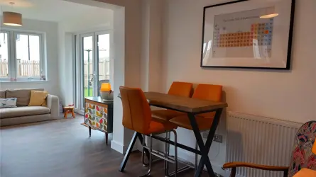Spacious 3 bedroom, furnished semi-detached home. Family bathroom, principle en-suite & downstairs WC. Open plan kitchen and dining area & sunroom leading to patio. Gardens to front & rear. Driveway parking for 2 cars.LARN 1810017
