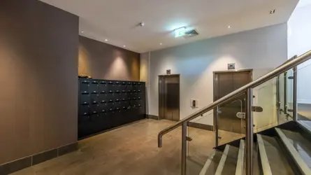- A contemporary third floor apartment with balcony.