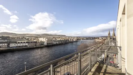 Inverness has all the facilities of a thriving modern city, while the mix of old and new has allowed it to retain much of its historic dignity and strong Highland culture which blend well with modern theatre and the arts. There are good communications by both road and rail and the airport offers regular flights to the south and Europe. Apartment 303 By the Bridge is in the heart of the Highland capital, on the corner of Bridge Street and Bank Street overlooking the River Ness. The property lies within walking distance of a wealth of amenities including High Street retailers, the Eastgate Shopping Centre and a Tesco Superstore and is close to attractions such as Inverness Castle, the picturesque Ness Islands and Eden Court Theatre. The surrounding countryside is unspoilt and varied from beaches and harbours to woodland and dramatic mountain ranges. There is also an abundance of native wildlife which, together, all enhance the natural beauty of the area.Apartment 303 By the Bridge is a third-floor contemporary apartment enjoying spectacular and far-reaching views taking in the River Ness, the bell towers of Inverness Cathedral and the countryside beyond including Ben Wyvis to the north. The south westerly aspect and an abundance of glazing allows an influx of natural light producing a bright and airy interior with an open plan living area with a balcony from which the panoramic views can be enjoyed. The development has a security video entrance system, all floors within the building are serviced by a lift and Apartment 303 has a designated parking space within the secure underground carpark, accessed via Bank Lane.