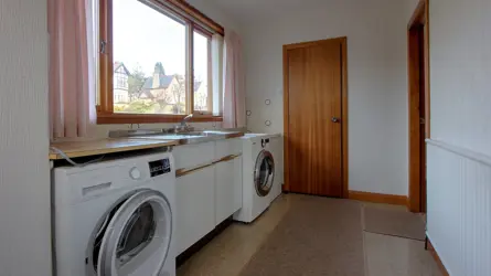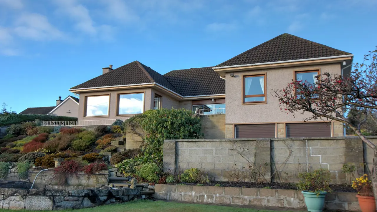 No. 30 is located about half way up Forteath Avenue, arguably Elgin’s most desirable residential street. Elgin, with its famous 13th Century Cathedral provides an excellent range of shops and amenities including a Hospital, leisure centre, swimming pool and cinema. The surrounding area also offers some fine hotels, restaurants and local attractions. There are a number of good primary schools in Elgin and two secondary schools. Private schooling for children over eight years of age is available at Gordonstoun School, about 6 miles away. Inverness (38 miles) has all the facilities of a modern city including its Airport (31 miles) which offers regular flights to the south and summer flights to many European destinations. Aberdeen Airport is located about 68 miles to the east.The county of Moray is famous for its mild climate, has a beautiful and varied countryside with a coastline of rich agricultural land, prosperous fishing villages and wide, open beaches. The upland areas to the south are sparsely populated and provide dramatic scenery, some of which forms part of the Cairngorm National Park. This unspoilt landscape provides a wide range of leisure and sporting opportunities including fishing on the world famous Spey and Findhorn rivers, skiing at The Lecht and Cairngorm range, sailing and walking. There are many highly regarded golf courses in the area including a fine course at Elgin whilst located about 20 minutes’ drive away is the ‘jewel’ of the Moray Coastline, the historic village of Findhorn with its sheltered bay providing excellent sailing, water sports and highly regarded Inns. 30 Forteath Avenue sits in arguably one of the most desirable positions in Elgin. With a fine south facing view over The Wards and towards the Brown Muir, the house enjoys uninterrupted views and is within close proximity of a wide range of amenities including West End Primary School, the train station and town centre. Built in 1978 by Tullochs of Cummingston, the house has been well designed and built from rendered block and sandstone under a pitched tiled roof and provides extensive and well-appointed accommodation primarily over a single storey. On the ground floor, the house is entered through a vestibule / hall into the impressive reception area / sun lounge. This is a bright and airy room with French doors to a patio and the garden with doors leading to the bedroom wing and public rooms respectively. To the right is the sitting room with large south facing windows and a fireplace. There is a dining room with a hatch through to the well-equipped kitchen. In addition, there is a larder, utility room and WC. Turning left in the sun lounge leads to a family bathroom and 3 good sized bedrooms, one of which have built in storage. Accessed either from the garden or from a fixed staircase in the hall, are the basement / lower ground floor rooms which include a generously sized store / workshop, a home office, shower room and the double garage. The house has a lovely bright and airy atmosphere with large double-glazed windows flooding the interior with natural light. The rooms are each of a generous size and there is excellent provision of built in storage throughout including a part floored loft. Whilst to some buyers the interior décor and fixtures may appear dated by modern standards, they are still of a high quality and in excellent condition. The property is heated using gas central heating and is connected to mains services and foul drainage.Outside, the extensive garden is no less impressive than the house. Enclosed by a low block wall, the garden includes terraced areas of lawn, well stocked beds and borders, a patio, fish pond, various fruit trees, green house and a glass house.