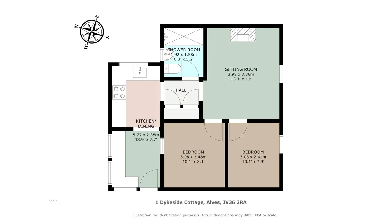 1 Dykeside Cottages is a semi-detached cottage constructed of harled block under a pitched slate roof. The cottage has been extended and modernised and provides well-proportioned accommodation over a single storey. From the driveway, a door opens into the generous kitchen with new wall and floor units and space for a table and white goods. From the kitchen a hallway leads to the bright, cosy sitting room with wood burner. The 2 bedrooms and shower room complete the accommodation. The cottage has a mixture of double and triple glazing, has new flooring and is freshly painted. It is heated with electric wall mounted heaters, connected to mains water and has private drainage. GARDEN The cottage benefits from an area of private garden to the front, side and rear, however this is mainly overgrown. Parking is provided to the side and rear of the cottage. Please note the occupiers of the attached cottage have a right of access for parking between the cottage and the front garden area. Please see site plan.