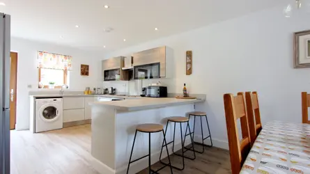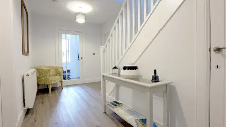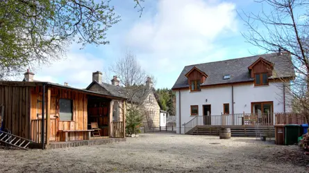 Stillman’s Rest is a delightful family home completed in 2021 and located in a superb semi-rural position in the hamlet of Carron. Constructed of stone and harled block under a pitched slate roof, the house provides spacious and flexible accommodation over two storeys. On the ground floor, a front door opens into a large vestibule and then into the hall. To the left you will find the bright spacious sitting room, with log burner and patio doors leading onto the sheltered deck. Also off the hall to the right is the generous dining kitchen, again with a door leading to the deck. The family shower room completes the accommodation on the ground floor.On the first floor there are 3 bedrooms with the master bedroom benefiting from an en-suite shower room, a family bathroom completes the accommodation. Stillman’s Rest is double glazed, heated with oil central heating on mains water with private drainage.GARDENThe private garden to the rear is enclosed by fencing and is laid to gravel, with scope to turn it into a wonderful private space. There is a lovely, decked area to the back of the house that takes in the peaceful surroundings and a generous shed, half of which is used as a workshop and the rest is a covered sitting area. Ample parking space is provided on the gravel at the rear of the property.