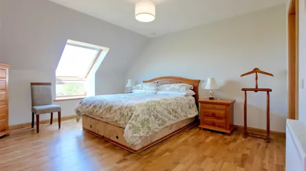 Located within a small, well-established community in Easter Coltfield, this thoughtfully designed home brings together modern architecture with a focus on energy efficiency and smart technology. Completed in 2022, the property blends clean contemporary lines with the warmth of its rural surroundings. 6 Easter Coltfield has a wonderfully bright and airy feel with large windows flooding the interior with natural light. The triple aspect sitting room with vaulted ceiling has stunning views towards Roseisle Forest and over the garden. The open plan kitchen/dining /living room, with its high quality fittings and bifold doors to the patio and garden, are particularly impressive rooms.Upstairs the landing/seating area/home office, again with fabulous views over open countryside, and the master bedroom ‘suite’, are equally impressive. 6 Easter Coltfield has been built to an exceptionally high standard utilising modern building techniques. The property benefits from triple glazing that minimises heat loss, a ground source heat pump, solar panels and high levels of insulation. An automatic Tesla Gateway isolation allows the house to continue functioning during grid power cuts and blackouts. Overall, 6 Easter Coltfield is perfect for a growing family or prospective purchasers seeking rural luxury with eco-conscious values. Please note the builders EPC A:99 GARDENOutside, the house sits within grounds which are no less impressive than the house and extend to about a third of an acre. Bordered by hedging the garden is beautifully maintained, mostly laid to lawn, interspersed with fruit trees and a number of raised vegetable beds with their own irrigation system. A sheltered area, accessed from the dining kitchen, provides a wonderful seating area and there is a second area in the garden with provision for a summer house. A gravel driveway to the front of the house provides ample parking space in addition to the integral double garage which has electric doors to the front and back.