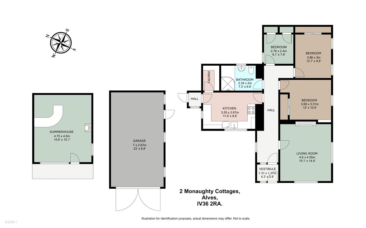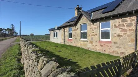 Located between Elgin and Forres, 2 Monaughty Farm Cottages sits in a tranquil setting about a mile from the A96 (Inverness to Aberdeen trunk road) and to the south of the small village of Alves on the ‘Laich of Moray’. Locally, Elgin and Forres provide a comprehensive range of shopping, dining and leisure amenities whilst Inverness (32.5 miles) offers all the facilities of a modern city including its Airport (26.9 miles) which can be reached in around 45 minutes. There are highly regarded primary schools in the local area including those at Alves, Mosstowie, Forres and Elgin. State secondary schooling is available in Elgin and Forres, whilst the world famous Gordonstoun School is located at Duffus, about 9 miles away.2 Monaughty Cottage is a traditional, semi detached cottage which provides well-proportioned accommodation over a single storey. From the driveway, a door opens into a hallway. To the right is the generously sized sitting room, with a log burning stove, views over the garden, to the left is a bright dining kitchen with ample wall and floor units and space for white goods. Along the hallway are the three bedrooms and shower room that complete the accommodation. Overall the cottage has a bright and welcoming feel and it has been modernised, overall it has a bright and welcoming feel. It is double glazed, heated by a back boiler, has PV solar panels, connected to mains water and private drainage. The cottage sits within a good sized, enclosed garden which is mainly gravel with lawn at the front. There are a number of sheds which provide storage space and a generous summer house. Ample parking space is provided on the gravelled driveway and garage to the side of the house.