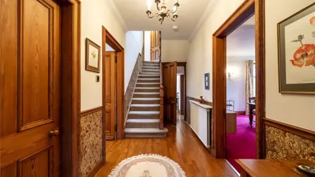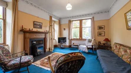 Burnhill is a handsome late Victorian house in the conservation, former spa village of Strathpeffer in Ross-shire. The property lies in a peaceful setting on an elevated site on the edge of the village with beautiful easterly views up the wooded strath.Strathpeffer expanded with the arrival of the railway in Victorian times when visitors came to take the famous spa waters. Today the village is popular for its handsome architecture, active community and as a base from which to enjoy the area with its easy access to Inverness and the west and east coasts. There is a small supermarket, highly regarded primary school, restaurant, hotels and a modern doctors’ surgery. The market town of Dingwall is just a ten minute drive away and has a wider range of shops and amenities including a modern secondary school, while Inverness has all the facilities of a modern city including its airport with regular flights to the south and Europe.The surrounding countryside is varied and unspoilt from the Cromarty Firth coastline to the majesty of Ben Wyvis. There are several waymarked walks and cycle trails directly from the village including the Peffray Way which is just a short distance from the house.The property has been in the same family since 1980 and indeed, during its lifetime has had only four different owners. Although now in need of some modernisation, the house has been improved over the years and regularly maintained to create a comfortable and manageable family house. Typical in a house of this period, the accommodation includes well proportioned rooms, intricate cornicing and beautiful woodwork.The accommodation is over three floors and within this the option exists to create separate accommodation both in the rear wing bedroom suite, and in the basement.