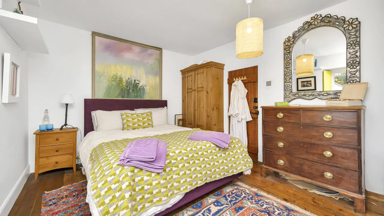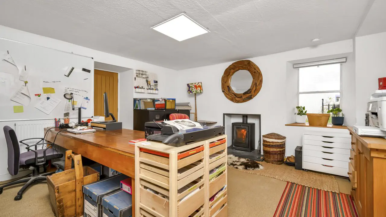 Cromarty is an 18th Century former fishing village, on the Black Ise, a peninsula which lies just to the north of Inverness between the Moray and Cromarty Firths. A charming mix of meandering lanes, fishermen’s cottage and substantial merchants’ houses with a good range of independent shops, a small supermarket with post office, and primary school, as well as a community cinema, cafes, restaurants and the harbour with its ferry to the north side of the firth. Secondary schooling is available at the highly regarded Fortrose Academy and Inverness, about 40 minutes’ drive away, has all the facilities of a modern city including its airport with regular flights to the south and Europe. The Black Isle has fertile rolling countryside with a beautiful coastline of raised beaches and prominent headlands. The area has a number of way-marked cycle trails and walks, while the coastal villages offer sheltered harbours, and nearby Fortrose has a links golf course.No 5 Bank Street is a category B-listed dwelling, which dates circa early 19th century, located in the conservation village of Cromarty. The property has been owned by glass artist Emma Nightingale since 2014 who has made many improvements throughout her ownership including full refurbishment, the replacing of the ground floor shower room, the upgrading of the kitchen, the installation of new log burners, has improved the insulation and more recently has re-harled two elevations and has had the exterior painted. Most of the windows have also been replaced within her ownership, with planning permission and listed building consent granted for the replacement of all windows. The air source heat pump has a Renewable Heat Incentive, and the PV solar panels mounted on The Studio feed the house and have a feed-in-tariff. The Studio, built in 2016/17, was designed by local Cromarty architect Lynne Sproull to be flexible in the way it could be used, including as a home office or as ancillary accommodation to the main house and has been wired for kitchen appliances and has a WC with plumbing for a shower. The Studio is a lovely, light filled space with bi-fold doors opening onto the patio. Lynne Sproull has also designed a two-storey extension to 5 Bank Street and these plans can be found on the planning pages of the Highland Council website using reference 15/02168/LBC. Emma Nightingale has added her own touch to 5 Bank Street with the two glass panels in the front door, a similar glass panel above the sitting room door, all of the be-spoke glass panels in the ground floor shower, and a glass panel behind the hob in the kitchen all being designed and handmade by her.