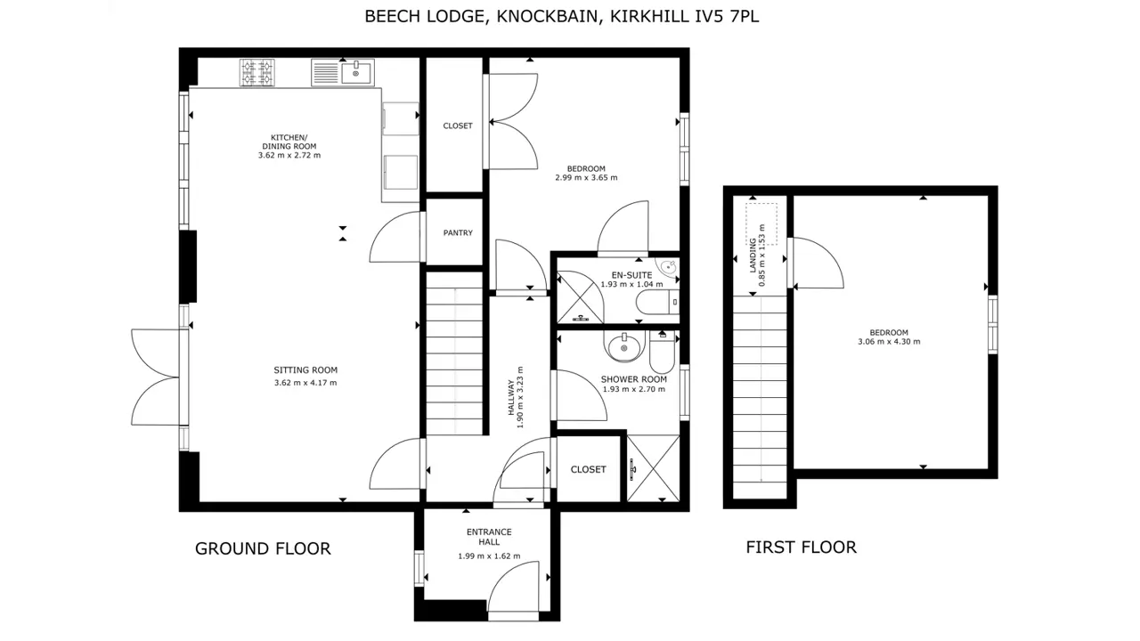 Knockbain is found in peaceful yet easily accessible location west of Inverness, close to the village of Kirkhill. Quiet single track roads around the house are ideal for cycling, while nearby there are countryside walks and forest trails. The village of Kirkhill has an active community centre, a primary school with nursery and a free bus service runs from Knockbain to secondary schooling in Inverness.Inverness has all the facilities of a modern city including its airport with regular flights to the south. Beauly about 5 miles away, has further amenities including a railway station, shops, cafes and restaurants and two doctors surgeries. The National Nature Reserves of Glen Affric, and Strathfarrar are just a short distance away and the west coast with its excellent sailing and beaches is within easy reach.Beech Lodge, a charming, detached two bedroom dwelling was built by the current owners in 2010.The property is situated in an enviable location enjoying far reaching views over the surroundingcountryside taking in Ben Wyvis, the Beauly Firth and beyond. With accommodation spread overtwo floors, Beech Lodge has ramped access with an en-suite bedroom being located on the ground floor along with a shower room and light filled open plan living area designed to take advantage of the views. Full planning permission was granted in June of 2022 for an extension to the lodge and for the build of a detached garage, with a building warrant being granted in June 2024. Details of the permission and the warrant can found on the eplanning pages of the highland Council website using the references 22/02265/FUL and 24/00386/DOM3. Groundwork for the build has been started by the sellers to a point where the area could be easily returned to garden by the purchaser should they not be minded to develop the property.ADDITIONAL INFORMATIONThe property can only be used as a full time residence and cannot be used for holiday let/short term let purposes. A servitude right of access exists over the private track for residential and delivery use only.A title for Beech Lodge is yet to be produced and the site plan within these particulars is purely indicative.