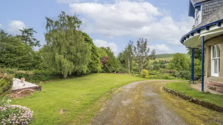 Eaglestone is a delightful B Listed house in the conservation area of Strathpeffer, a Victorian Highland spa village in Ross-shire. The property lies in a peaceful setting on the edge of the village, sheltered by the mature woodland that fringes its boundaries.Strathpeffer expanded with the arrival of the railway in Victorian times when visitors came to take the famous spa waters. Today the village is popular for its handsome architecture, sense of community and as a base from which to enjoy the area with its easy access to Inverness and the west and east coasts. The village has a small supermarket, highly regarded primary school, restaurant, hotels and a modern doctors’ surgery. The market town of Dingwall is just a ten minute drive away and has a wider range of shops and amenities including an excellent secondary school while Inverness, about 19 miles away, has all the facilities of a modern city including its airport with regular flights to the south and Europe.Eaglestone was built in the mid 1800’s and is a significant house in the village for its striking design with its symmetrical 3 bay frontage and continuous open fronted veranda around the house. Further information on the house and its listing status can be found at https://her.highland.gov.uk/monument/MHG16305The current owner bought the house about four years ago and since then has carried improvements to all elements of the property – the house, coach house and grounds – to create a delightful and versatile home.The house is in good order throughout and has well laid out family accommodation retaining many original features including its gracious reception rooms each with one curved wall, cornicing and