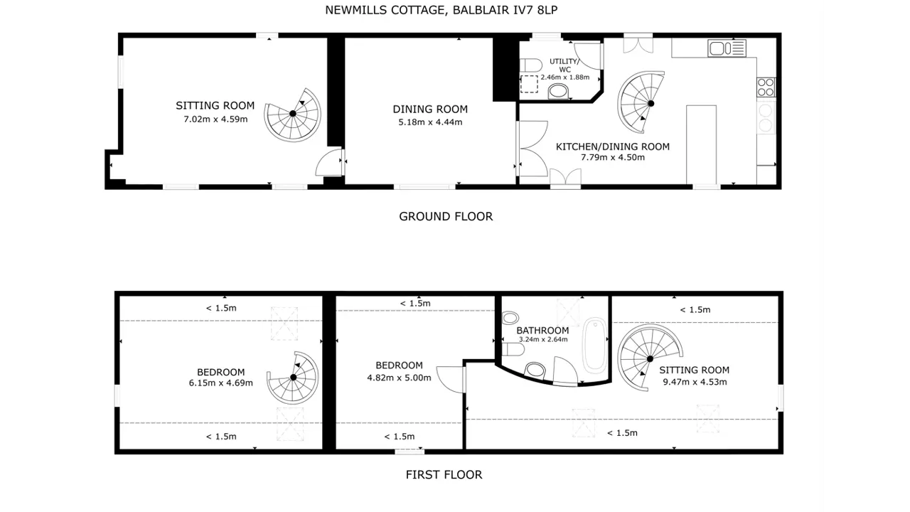 Newmills House is in the scattered hamlet of Newmills on the Black Isle. The property is ina beautiful, sheltered setting and one of a cluster of traditional houses, with a burn runningalong one boundary and stunning, far-reaching views to Ben Wyvis from the rear.The Black Isle lies between the Moray and Cromarty Firths and has fertile rolling countrysidewith a beautiful coastline of raised beaches and prominent headlands. The area has a numberof way-marked cycle trails and walks, while the coastal villages offer sheltered harbours andFortrose has a links golf course. The unspoilt countryside provides a haven for many rareand protected species of wildlife and Newmills is in an ideal setting from which to enjoy thebest the area has to offer with beautiful walks direct from the house.Cromarty is a former fishing village and is a charming mix of meandering lanes, fishermen’scottage and substantial houses. There is a good range of independent shops, a smallsupermarket with post office, and primary school, as well as cafes, restaurants, a brand newCommunity Cinema and the harbour with its ferry to the north side of the firth. Secondaryschooling is available at the highly-regarded Fortrose Academy and Inverness, about 30minutes’ drive away, has all the facilities of a modern city including its airport with regularflights to the south and Europe.The property was purchased by the current owners about 15 years ago and comprises atraditional farmhouse with an adjacent U-shaped stone and slate steading. The farmhouse hasbeen partly renovated but is now in need of further renovation, however, it is extremely attractive and offers great potential.