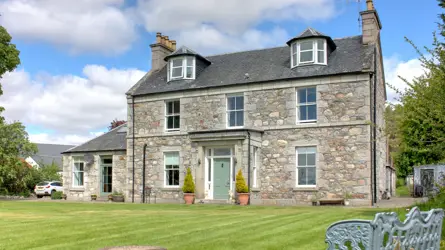 SITUATION The Old Manse sits in an exquisite location in the heart of the Cairngorm National Park, on the edge of the rural hamlet of Duthil and close to the charming village of Grantown-on-Spey. Local amenities are available in Grantown-on-Spey which has a number of shops, hotels, supermarket, doctor surgeries and primary and secondary schooling. Aviemore has an excellent range of shops and amenities as well as its railway station on the main Kings Cross to Inverness railway line. The Cairngorm Ski and Activity Centre offers year round activities including skiing, mountain biking, walking and climbing, while nearby Loch Insh offers a range of water based sports. Inverness, about a forty minute drive away, has all the facilities of a modern city, including its airport, while Perth, Edinburgh and Glasgow are all within easy reach.The Cairngorm National Park was established in 2003 to protect its beautiful and unspoilt landscape and promote a balance between nature and community. The countryside is varied, from moorlands and mountains to lush glens and beautiful lochs. The Old Manse is ideally located to take advantage of the wide range of rural pursuits available within the Park which include skiing, ski touring, way-marked walks, cycle trails, hill climbing and shooting. Fishing is available on a number of local rivers and lochs and permits are available for salmon, sea trout and brown trout on the River Spey, which lies nearby. DESCRIPTION The Old Manse is an outstanding and very attractive former manse located in a stunning semi-rural setting in the hamlet of Duthil. It is constructed of stone under a pitched slate roof, providing spacious and well-appointed accommodation over three storeys. From the front garden, the house is accessed through a brightly lit vestibule which leads to the reception hall. A door to the right leads to a dual aspect drawing room with an open fire, whilst to the left is the dining room which also has an open fire. There is a wonderful sitting room with access to the garden and a spacious and well-equipped utility room. The breakfasting kitchen has a good range of wall and floor units and an electric Aga. A door from the kitchen leads to a passage with a door to an ensuite bedroom and completing the ground floor is a study and a WC. On the first floor, there is a family bathroom and 5 double bedrooms (2 en suite) whilst on the second floor there are three further en suite bedrooms. There is also an attic space above the sitting room and utility room ripe for conversion subject to the necessary planning permissions.The house appears to be in excellent condition and is very tastefully decorated throughout. The ground floor reception rooms and the first floor bedrooms are particularly appealing rooms and the property has many of the features one would hope to find in a house of this age and character, including tall corniced ceilings and fireplaces. The house is heated using oil central heating (in addition to an electric Aga in the kitchen) and it is connected to mains electricity and water and private foul drainage.GARDEN Outside, the grounds are no less impressive than the house. Extending to just over half an acre, with areas of lawn, well stocked borders, fruit trees and various raised beds, a greenhouse and a patio to the rear, all enclosed by a stone wall. The garage (the old coach house) is located just outside the gates.