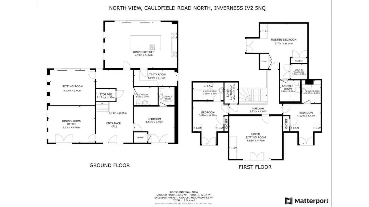 North View is in the popular residential area of Cradlehall on the edge of Inverness, recently named as one of the top 10 places to live in Scotland by a nationwide property search company. Cradlehall has a semi-rural feel with its cycling-friendly, tree-lined, single track roads; natural features and traditional stone walls. In addition, there is a highly regarded primary school within walking distance and the city centre and airport are in easy reach. Inverness has all the facilities of a thriving modern city and the mix of old and new has allowed the city to retain much of its historic dignity and strong Highland culture which blend well with modern theatre and the arts. There are good communications by both road and rail and the airport, about a fifteen minute drive away, offers regular flights to the south and Europe.The countryside of the Scottish Highlands is varied, from the fertile, rolling farmland of the coast to the inland moorlands and rugged mountains. This unspoilt landscape provides a haven for many rare and protected species of wildlife as well as a wide range of rural leisure and sporting opportunities from way-marked walks and cycle trails on the Black Isle, to skiing and adventure sports in the Cairngorms National Park.North View is in a delightful setting, on a slightly elevated site edged by stone walls and with beautiful, framed views to the Moray Firth and Black Isle. The house was designed by the seller in conjunction with their architect and completed in July 2024. Attention to detail in all respects has created an exceptional house, combining traditional elements with features such as full height ceilings, deep skirting boards, and coving, with the best of contemporary design including a state of the art, Italian fitted kitchen, Hans Grohe bathroom fittings and porcelain tiled floors. The use of the highest quality materials, finishes and fittings create an outstanding living environment, while extensive use of glass and carefully positioned window openings fill the house with natural light and the understated use of colour allows the accommodation to flow.The beautiful entrance hall sets the template for the house with its high ceiling, porcelain tiled floor and impressive sweeping staircase. There are two reception rooms on the ground floor and the magnificent dining kitchen has sliding doors extending the sense of space into the garden, while porcelain tiled patios mirror the tiled floors in the house. The first floor has a further reception room, its Juliette balcony taking advantage of the views across the city to the Moray Firth and Black Isle. The master bedroom suite has a beautifully appointed shower room and walk-in dressing room, while the further bedrooms, including one on the ground floor, are spacious and each has its own shower room. The house is highly energy efficient with an air source heat pump, very high levels of insulation, top quality double glazing and pv panels which supply electricity to 9v battery storage.