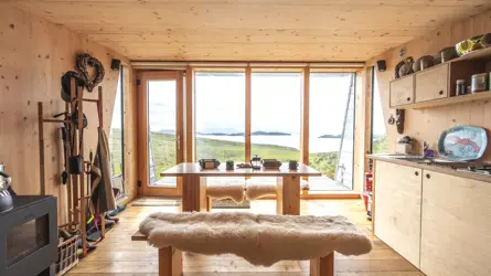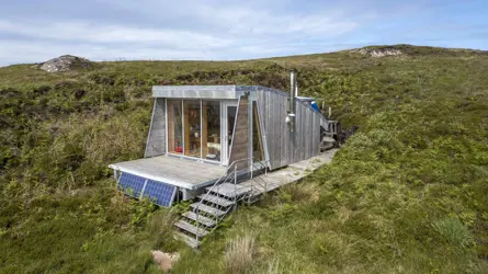 Mullagrach Island is the most northerly of the Summer Isles, a group of around 30 islands south of the Coigach peninsula. The island, which lies approximately two miles from Old Dorney Harbour (a boat journey of about thirty-five minutes), was purchased by the owners in 2006, extends to approximately 88.7 acres and comprises rough grass and heather dotted with wildflowers and a coastline of rocky beaches, sheltered coves, caves and cliffs. It has been the owners’ objective to conserve and improve the wildlife and vegetation of the island and to minimize disturbance to sensitive species of flora and its birdlife including, amongst others, great skua, kittiwakes, shag, fulmars and geese.The island, which can easily be reached by boat from the mainland, has a landing stage and ground tackle for running mooring. In order to enjoy the island and facilitate their management of wildlife conservation, the owners were granted planning consent in 2014 for a high-quality, low environmental impact cabin. Manufactured in Switzerland and of cross laminated timber construction, the cabin has been positioned and designed to withstand the weather conditions, while its curved, heather clad roof allows it to blend into the landscape. The interior is well equipped with a kitchen area, wood burning stove and two box beds, while solar panels provide power and there is an outside composting WC. There is a rainwater collection system, but drinking water is bottled.MOVEABLESThe island and cabin are sold as seen.The option exists to purchase the sellers’ boat by separate negotiation. The boat was designed and built by Tim Loftus, of Johnson and Loftus boatbuilders in Ullapool. He built it from Vendia marine plank, a lightweight and stable alternative to solid timber, from renewable sources and from local larch. It has a lithium battery powered electric outboard enabling a 35 minute transit to the island.ISLAND VIEWINGViewing of the island is limited due to weather conditions and means of access.Either the sellers or a local fishing boat owner involved in the maintenance of theisland structures, will accompany viewings. These will only be accommodatedfor those who have formally noted interest. Anyone visiting the island willneed to wear outdoor clothing and sturdy footwear and will have to be of alevel of fitness to travel by boat and climb the ladders to reach the island.