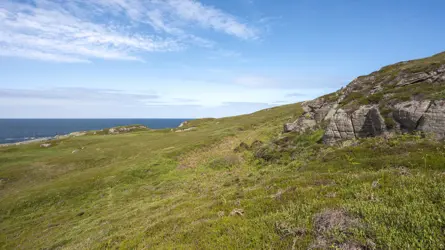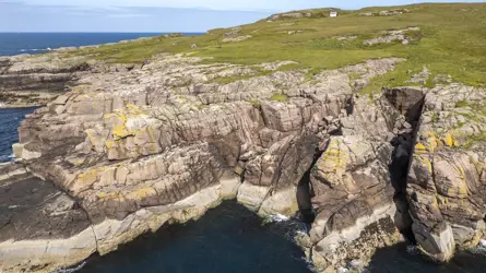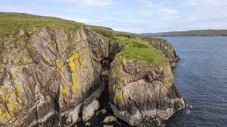- A coastline of rocky beaches, cliffs and caves.