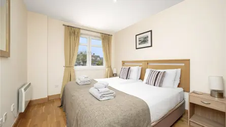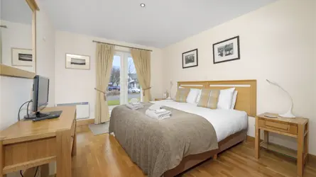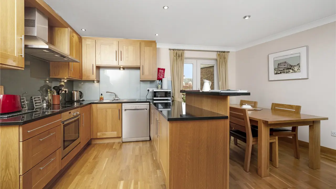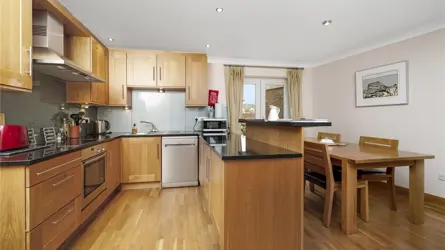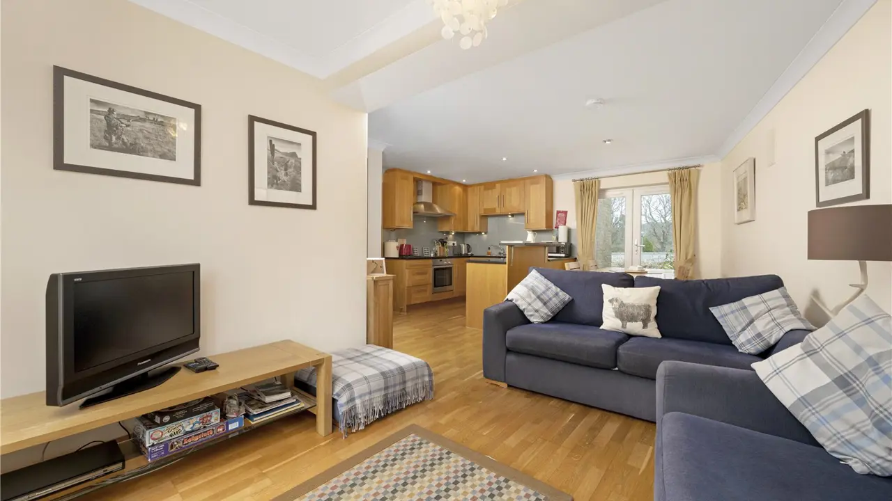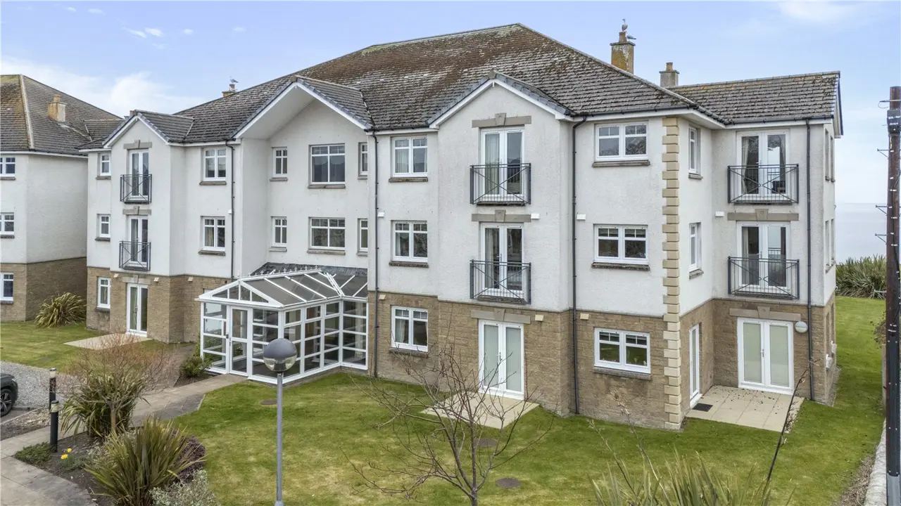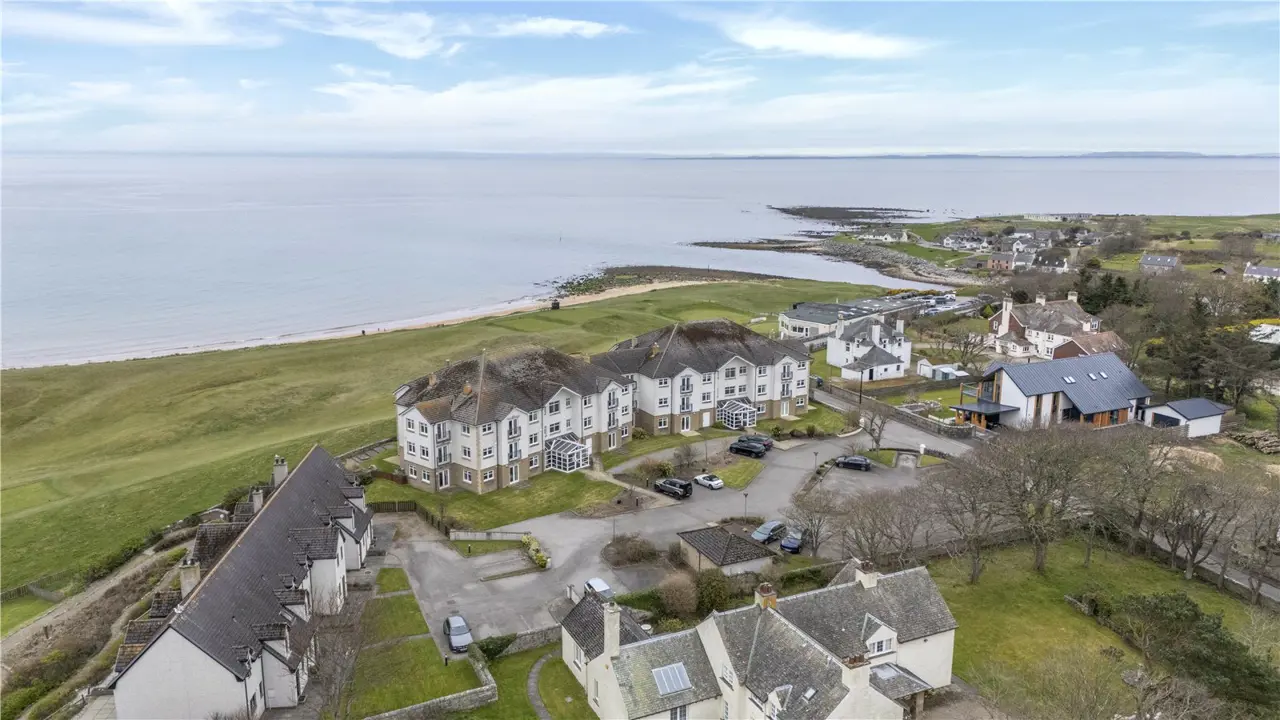 No 4 The Links is a ground floor apartment set in an exclusive development on the edge of Brora golf course. The apartment has lovely south-facing views to the golf course, the Moray Firth and the north east coastline and is filled with coastal light throughout the day.Brora is in an area of the Highlands popular for its beautiful beaches, links golf courses, stunning landscape and dry climate. This unspoilt region offers many pursuits for the outdoor enthusiast including walking and hill climbing as well as golfing, fishing and stalking. Brora has a supermarket, general shops, restaurants, hotel and links golf course, while nearby Golspie has schooling up to secondary level, a railway station and another popular golf course. Dornoch and Tain are both within easy reach and offer further shops and facilities. Inverness, about one hour’s drive away, has all the facilities of a modern city including its airport with regular flights to the south and Europe.The Links Apartments are accessed through external doors with entry phone system leading to the well-maintained communal hall with carpeted corridors with automatic lighting.No 4, a ground floor apartment which was purchased by the current owner in 2020, has been finished to high standard with beautifully appointed bathrooms and kitchen, and an integrated sound system. The focal point of the apartment is the open plan sitting room, dining room and kitchen which has two sets of french doors, one opening to a sheltered patio overlooking the golf course and one to the rear overlooking the communal gardens.