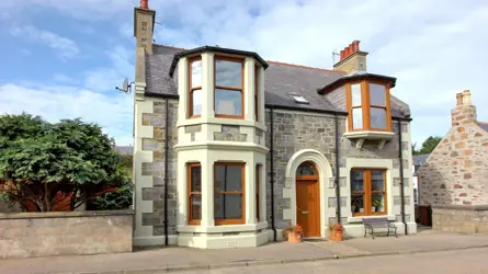 Merivale, 16 New Street is an impressive detached traditional house located at the heart of the picturesque village of Findochty on the Moray Coast. In the 18th and 19th centuries, Findochty was a thriving fishing town and the village is centred around an attractive harbour, and offers basic day to day local amenities. Nearby, Buckie (about 3 miles) has a good range of facilities including a variety of shops, supermarkets and both primary and secondary schooling. Further afield, the city of Elgin (about 20 miles) has a wider range of facilities. Moray and the historic county of Banff are renowned as being one of the sunniest and driest counties in the country and offer a wide range of excellent places to stay, eat and shop. The local area is famed for its breathtaking scenery, long sandy beaches and wildlife and offers wonderful leisure and recreational opportunities. There are a number of excellent beaches within a few minutes’ walk of the village. There are many golf courses in the area whilst the county also offers superb Salmon and Trout fishing including the highly acclaimed Rivers Spey and Deveron nearby. A popular tourist area, local attractions also include ‘The Whisky Trail’, Duff House and Museum in Banff as well as the Macduff Marine Aquarium and Museum of Scottish Lighthouses in Fraserburgh. Aberdeen International Airport is about 62 miles away offering regular domestic and international flight whilst the city (about 66 miles) offers a wonderful range of amenities befitting one of the country’s wealthiest and most cosmopolitan cities. Dating from 1910, Merivale, is a grade B listed detached house located at the heart of the picturesque fishing village of Findochty and within a designated conservation area. Constructed of stone under a slate roof, the house was comprehensively renovated by the current owners in 2019 to create what is now a magnificent home. Spacious and well-appointed accommodation is provided over two storeys and includes an entrance vestibule, reception hall, an open plan kitchen / dining / living room, a sitting room, family room / 4th bedroom, utility room, WC and rear hall on the ground floor. On the first floor, a landing leads to the family bathroom and 3 good sized bedrooms, one of which benefits from an en suite shower room.The relatively recent renovations were done to an exceptional standard marrying a wealth of modern fixtures and fittings with many fine period features one would hope to find in a property of this age and character. The open plan kitchen / dining / living room with high quality kitchen fittings, granite work tops, engineered bamboo flooring and a gas fire (stove style) is an exceptional room whilst the corniced sitting room with a bay window and the family room with attractive built-in cabinets are also most appealing. A floored attic with a fixed staircase provides excellent storage space as well as scope for development into additional accommodation (subject to obtaining all necessary consents). Some of the recent improvements to the house include laying high quality flooring throughout including riven slate tiles in the family room, rear hall, utility, WC and vestibule whilst both bathrooms benefit from under floor heating. The house benefits from upvc double glazed windows, gas central heating and connections to all mains services.Outside, the garden is no less impressive than the house and which includes a wonderful timber built summer house and seating area, two detached garden stores, areas of lawn interspersed with several mature beds and borders as well as various mature trees. In addition, there is a chicken run and a useful single garage.