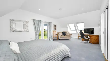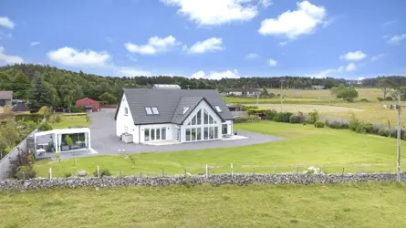 Dalbuie House is in the hamlet of Upper Myrtlefield close to Inverness. The property is in a delightful, secluded setting with spectacular views over the Moray Firth to the Black Isle. In its semi-rural location, with peaceful, single track road that meanders through a scattering of houses in mature woodland, Dalbuie House enjoys the benefits of living in the countryside with much the convenience of city life.Inverness is a thriving and expanding city, its prosperity reflected in its amenities including excellent restaurants, good shopping, recreational facilities and University, while the strong, traditional Highland culture blends happily with modern theatre and the arts. Primary schooling is available at nearby Balloch School and secondary schooling at the highly regarded Culloden Academy. Inverness has good communications with a main line railway station in the city and the airport with its regular flights to the south and Europe.The Moray coast is famous for its mild, dry climate and beautiful and varied countryside offering many opportunities for rural sport and recreation. Sailing on the Moray Firth is excellent and there is a marina at Inverness and harbours dotted along the coast. The area is also popular for its first-class golf courses and the venue for the Scottish Golf Open is at Castle Stuart just a few miles from Woodside House. The Lecht and Cairngorm Ski and Activity Centres are both less than an hour’s drive awayDalbuie House, which was completed in 2022, was designed by the sellers in conjunction with their architect. The highest quality materials, finishes and fittings have been incorporated throughout and attention to detail in all respects has created an exceptional house, using the best of contemporary design. Extensive use of glass and carefully positioned window openings fill the house with natural light, while the understated use of colour allows the accommodation to flow. Running costs are minimised with an air source heat pump, very high levels of insulation, top quality double glazing and pv panels which heat the water and supply electricity to battery storage.