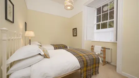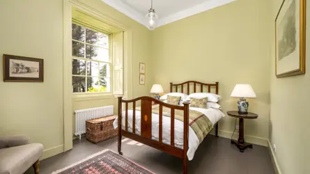 Bayfield House lies close to Nigg village on the Tarbat peninsula in Easter Ross. The property is in a stunning setting, surrounded by mature wooded grounds and with spectacular views over the Cromarty Firth to the Black Isle. A B listed, Georgian country house of note in the area, Bayfield House has been converted into six separate flats, four of which are in the main portion of the house.The area is popular for its dry climate, wonderful coastal light and fertile farmland culminating in a coastline of sheer cliffs and sandy beaches dotted with historic fishing villages. This varied landscape offers many opportunities for a wide range of rural sports and recreation and the renowned links golf courses, including the world famous Royal Dornoch Championship Course, attract visitors from all over the world.The nearby village of Portmahomack has a post office, shop and restaurants, while nearby Tain has an excellent range of shops and amenities including primary and secondary schooling. Inverness, about an hour’s drive away, has all the facilities of a modern city including its airport with regular flights to the South and Europe.No 1, Bayfield House is on the ground floor of the central portion of the house. On purchase in 2017, the sellers renovated the property to create extremely comfortable and well-presented two bedroom accommodation. The interior retains many original features including beautifully proportioned rooms, picture rails, cornicing, and working shutters. The flat has previously been a successful holiday let though you have closed bookings for 2025.