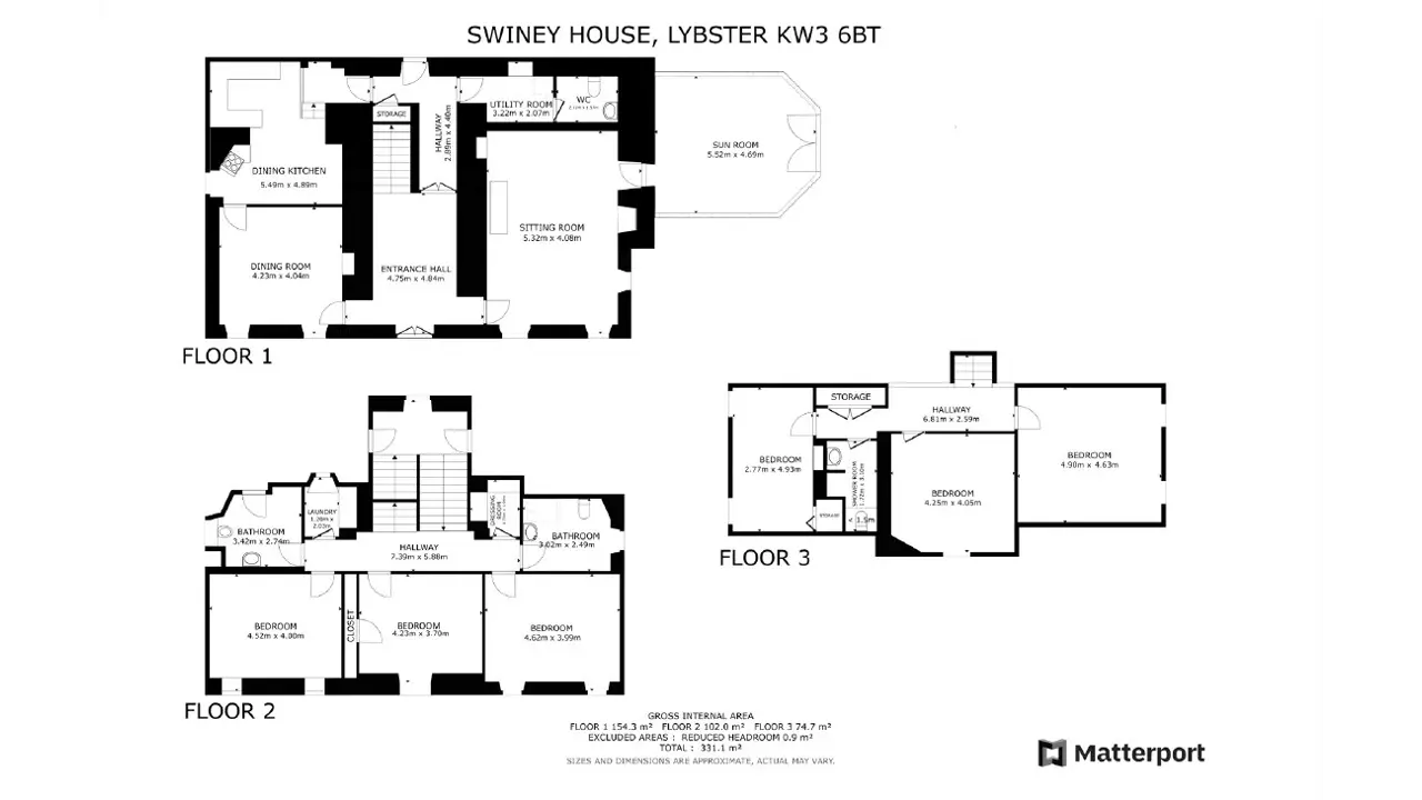 Swiney House lies close to Lybster in Caithness. Set at the end of a long, tree-lined drive, the house is sheltered by mature mixed woodland and has far-reaching views over farmland to Lybster Bay. The property comprises a traditional laird’s house with a range of outbuildings and a walled garden set in approximately seven acres of land.The northern Highlands of Scotland is one of the few landscapes which is still largely unaltered by human interference and on this eastern edge of the mainland, the wildness has shaped an environment which is at once beautiful and dramatic and offers the opportunity to enjoy nature at its best. The stunning Caithness coastline offers excellent amenity with its sheltered harbours, walks across the coastal grassland dotted with herbs and wildflowers, and its wide sandy beaches, excellent for surfing. The stunning landscape of the coast is set against a backdrop of spectacular mountains, home to a wide variety of wildlife and offering challenging mountain climbs.Lybster, which is just a short distance from Swiney House, is an attractive, 19th Century village which grew up around its fishing industry. It is no longer a fishing port, but still has its picturesque harbour as well as a primary school, a number of hotels, a café, and beautiful coastal walks. Wick has a good range of shops and facilities including schooling up to secondary level, North Highland College, supermarkets, a railway station and a hospital. Wick Airport lies just outside the town and has regular flights to Aberdeen and Edinburgh.Swiney House dates from the mid-18th century and was originally the main house for Swiney Estate. The property been owned by the same family for the last 40 years and has been sensitively modernised and well-maintained.The house, which has all the traditional features of a laird’s house, is well-presented in keeping with its date and style and provides comfortable family accommodation over three floors. The main reception rooms are elegant, and the many original features include crow step gables, long sash windows, panelling, stone arches in the entrance hall, cornicing, and period door and window furniture. Recent improvements include a kitchen and utility room extension with new kitchen and upgrading the heating system.