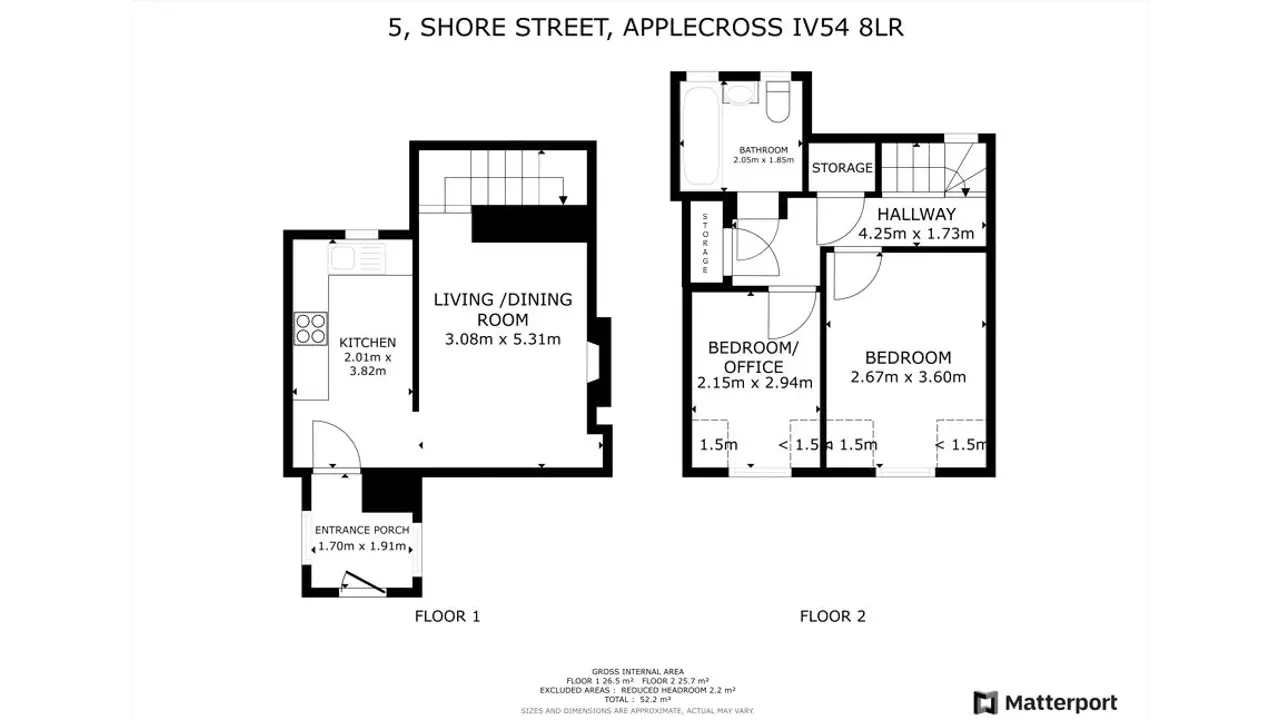 Located in the hamlet of Applecross on the Applecross peninsula in Wester Ross, on the famous NC500. 5 Shore Street is in a beautiful setting, set in ‘the street’ which follows the shoreline. There are good facilities in the area with a school and shop in Camusterrach as well as a resident doctor, a petrol station and the famous Applecross Inn and Walled Garden Café. Tesco Supermarket deliver to the village upon requests. Lochcarron, about 45 minutes away, has a small supermarket while weekly boarding is available at Plockton Secondary School. Inverness, about 2 hours’ drive away, offers all the facilities of a modern city including its airport with regular flights to the south and Europe.No. 5 Shore Street is a charming, mid terraced cottage enjoying fantastic views over Applecross Bay, to the Inner Sound and the islands of Raasay and Skye. The current owners purchased the property in 2005 and have since made several improvements including the addition of the front porch, the refitting of the kitchen, the laying of new floor coverings and the installation of an electric wet heating system. They have also installed a wood burning stove in the cosy sitting room, have replaced all glazing and have upgraded the electrics. The property is currently used as a holiday home for the owners but is sometimes used as overflow accommodation for the popular Applecross Inn, with the recent Short-Term Let Licence granted in March 2025. The Short-Term Let licence is transferable to the new owner, if required, and is valid until March 2028.
