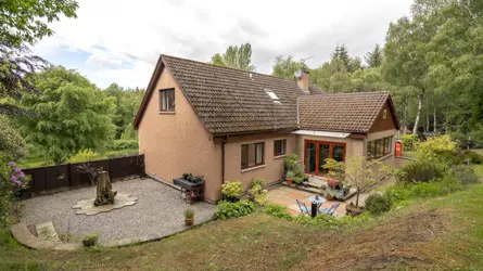 Glaick House lies in Glaick of Kessock close to North Kessock on the Black Isle. The property is in a stunning setting, secluded and private, surrounded by protected woodland and yet within easy reach of Inverness. The property comprises a main house and separate, two bedroom cottage set in beautiful, established grounds with formal gardens, a lochan and woodland.Although within easy reach of Inverness, the area is peaceful and unspoilt, the quiet countryside providing a safe habitat for native species of wildlife, while its network of single track roads and forest tracks makes it an ideal area for cycling, riding and walking. The house backs onto Ord Hill, a protected, forested ridge owned by Forest and Land Scotland, with a network of paths leading to a spectacular viewpoint at the top where there are the remains of an iron age fort.Inverness, which is just a short drive away, has all the facilities of a modern city including its airport with regular flights to the south and Europe. This prosperous and expanding city benefits from excellent communications and inward investment and yet, as the city has grown, it has lost none of its Highland cultural identity, seen in its strong sense of community and thriving arts scene.The sellers built Glaick House on a bare land site in 1985. Very much of their own design, the house has been completed to a high standard with well laid out, bright and spacious accommodation. Further improvements have been carried out over the years including a highly insulated dining kitchen extension of Beco wall-form construction. On an elevated site, the house looks out over the beautifully landscaped grounds, while the flagstone terraces at the front of the house soften the divide between the living space and the exterior.