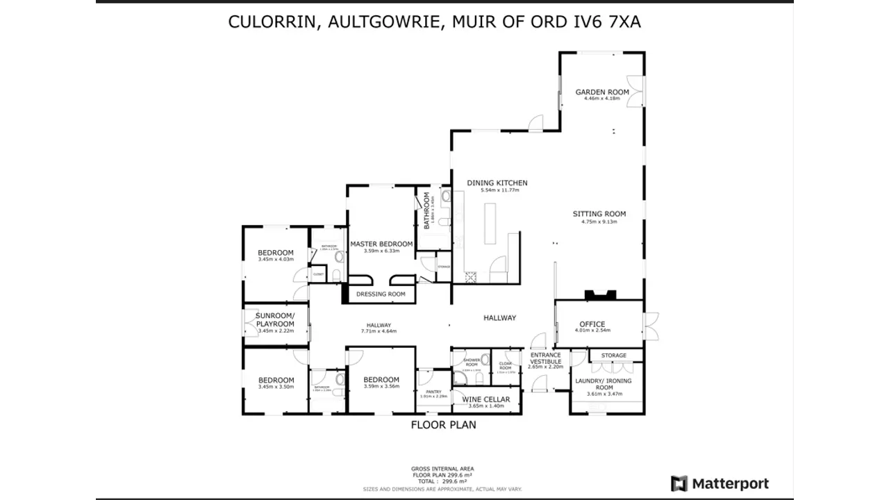 Culorrin is in the hamlet of Aultgowrie close to Muir of Ord in Easter Ross. The property is in a beautiful, secluded setting, at the confluence of the River Orrin and Aultgowrie Burn and with stunning views over its own grounds.The surrounding landscape is varied, from a network of single track roads passing through rich farmland set against a backdrop of majestic Ben Wyvis, to lush tree-lined river banks, grazing land and forests. The unspoilt countryside offers many opportunities for rural sport and recreation, as well as a habitat for native wildlife, while the west coast, famous for its spectacular coastline and sandy beaches, is under an hour’s drive away. A bridge and small drawbridge across the Aultgowrie Burn form part of a circular riverside walk within the grounds, while there are waymarked walks directly from the house including the beautiful River Orrin Falls walk and nearby is the magnificent, recently restored, Landmark Trust Fairburn Tower.Muir of Ord, just four miles away, has a good range of facilities including a small supermarket, doctor’s surgery and train station. The local primary school is in Marybank, a five minute drive from the house, and secondary schooling, as well as further amenities, are available in Dingwall. Inverness has all the facilities of a modern city including its airport with regular flights to the south and Europe.The current owners purchased the bare land at Culorrin over twenty years ago with the aim of designing a house which included traditional rural building features and construction materials, while incorporating contemporary elements. The result is an outstanding property where the Norwegian inspired clean lines of the exterior, clever use of symmetry, and deep foundations, along with a dry stone and timber finish create a house that is both striking and sits comfortably in its setting. The single storey accommodation has beautifully proportioned rooms including the impressive open plan sitting room, dining room, garden room and kitchen, its full height ceiling and extensive use of glass filling the room with natural light. There are high quality fittings throughout along with barrel-vaulted ceilings in the living areas and bedrooms and the understated finishes create a pleasing and restful interior to complement the stunning setting.The excellence of design has been recognised in two prestigious awards given when the house was first completed:Scottish Design Awards Northern Exposure Prize 2004/5Saltire Award for Housing 2004/5