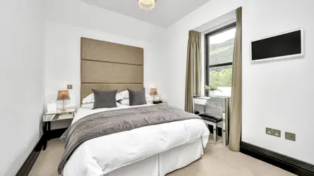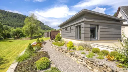 Old Schoolhouse lies on the A887 in the small village of Invermoriston in the Great Glen. This area is famous for its breathtaking scenery, associations with Loch Ness and the Caledonian Canal, and its proximity to Inverness, Fort William and the Isle of Skye. Away from these popular centres though, the beautiful countryside remains unspoilt and tranquil, providing a haven for wildlife and offering excellent sporting and leisure opportunities. The property lies a short distance away from the junction of two of most of the attractive sections of the Great Glen Way. As well as the traditional rural sports of fishing, shooting and stalking, the Nevis Range Ski Centre near Fort William offers year-round activities. Nearby Fort Augustus has a good range of shops and amenities as well as schooling up to secondary level. Inverness has all the facilities of a modern city including its airport with regular flights to the south and Europe.Old Schoolhouse, a handsome granite-built property which dates circa 1870 was purchased by the current owner in 2010 who carried out a complete renovation and extension in 2012. The 1950’s canteen was remodelled and linked to the Schoolhouse in 2016/17 and is now zinc clad and houses the principal bedroom suite including a dressing room. The result is an impressive and visually striking house, a mix of the old and new with a contemporary interior, yet sympathetic to the buildings origins and with great attention to detail. The accommodation has bespoke fittings and furnishings of the highest quality, and the abundance of glazing produces a light filled interior and takes full advantage of the views over the garden, the Glen and the River Moriston.