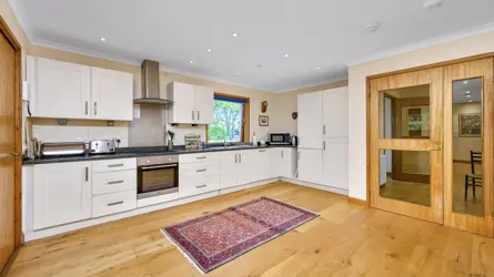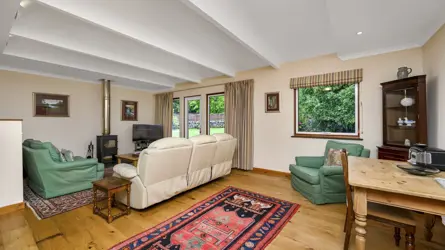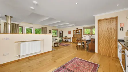 Balorrin is in the hamlet of Aultgowrie between Dingwall and Muir of Ord in the Highlands of Scotland. The property is in a beautiful, semi-rural setting, with a backdrop of native woodland and close to the banks of the River Orrin. Nearby Muir of Ord has a good range of facilities including a small supermarket, cafe, pharmacy, doctor’s surgery and train station. The local primary school is in Marybank and secondary schooling, as well as further amenities, are available in Dingwall. Inverness has all the facilities of a modern city including its airport with regular flights to the south and Europe.The surrounding countryside is beautiful and varied set against a backdrop of majestic Ben Wyvis. The unspoilt countryside offers many opportunities for rural sport and recreation, as well as a habitat for native wildlife, while the west coast, famous for its stunning coastline and sandy beaches, is under an hour’s drive away, There are waymarked walks directly from the house including the beautiful River Orrin Falls walk and nearby is the magnificent, recently restored, Landmark Trust Fairburn Tower.Balorrin, which was built in 1977, has been renovated by the current owners to create comfortable and well laid out, single storey, family accommodation. The open plan sitting room with wood burning stove, dining room and kitchen is the focal point of the house with its generous space and windows filling the room with natural light. The