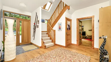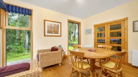 Birch House lies close to Rothiemurchus in the Cairngorms National Park. The property is in a beautiful, secluded setting in the Spey valley, surrounded by its own mature natural woodland providing privacy as well as a habitat for many species of flora and wildlife including pine marten, red squirrels, and a host of woodland birds.The Cairngorms National Park was established in 2003 to protect its beautiful and unspoilt landscape and promote a balance between nature and the community. Local attractions include mountain activities, cycling, skiing, water sports, fishing and bird watching, as well as salmon fishing on the nearby world famous River Spey. The RSPB reserves at Abernethy and Insh Marshes are within easy reach and there are several delightful walks locally. Rothiemurchus, and Aviemore Ski and Activity Centres are nearby and offer recreation throughout the year, while Kingussie and Newtonmore both have excellent 18 hole golf courses and Aviemore is home to the spectacular championship course that hosts many high-profile golf tournaments.Aviemore has a good range of local shops and amenities including a major supermarket, restaurants, hotels, primary and secondary schools, and main line railway station. Inverness, about a 40 minute drive away, has all the facilities of a modern city including its airport with regular flights to the south and Europe.The current owners purchased Birch House in 2012, about four years after it was built. The house has been well maintained and improved throughout their ownership, most notably the installation of new window openings and widening of some existing windows. Not only has this filled with house with light and increased solar gain, but the deep windows draw the eye into the gardens extending the sense of space.